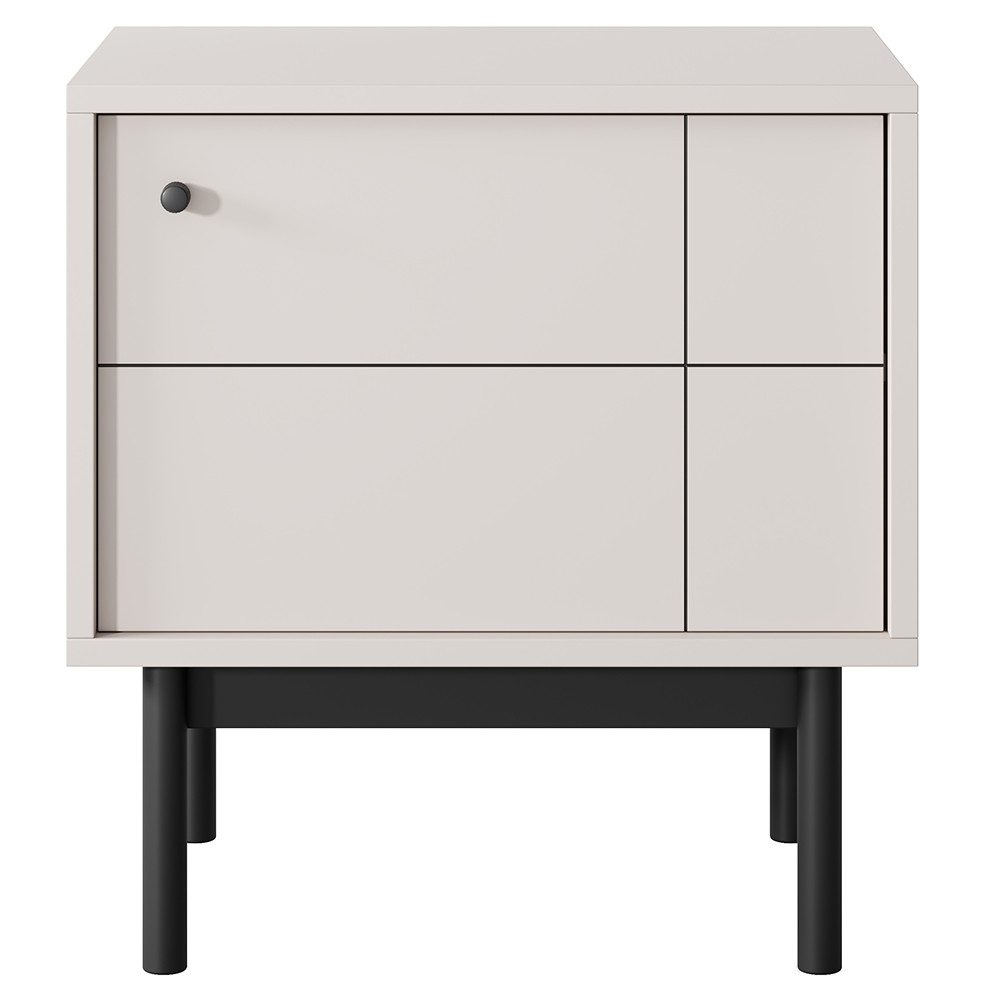 Die gefrästen Fronten verleihen den Möbelstücken einen einzigartigen Charakter und setzen ein stilvolles Statement in deinem Zuhause. Schwarze Metallknäufe und schwarz lackierte Holzfüße unterstreichen das minimalistische Design und sorgen für einen harmonischen Kontrast. Dank der Softclose-Funktion schließen die Türen und Schubladen besonders leise und sanft – für mehr Komfort im Alltag.