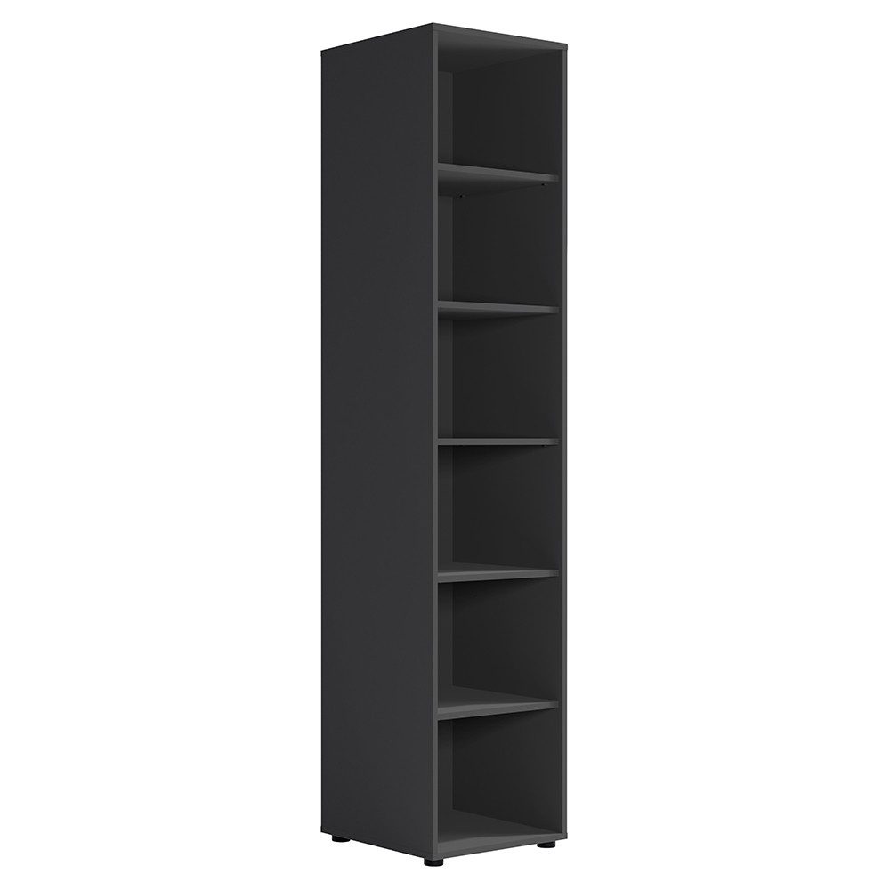 Sechs offene Fächer bieten dir Platz für Bücher, Accessoires oder Alltagsgegenstände, die du stilvoll präsentieren oder ordentlich verstauen möchtest. Die dunkle Oberfläche verleiht dem Raum Tiefe und Eleganz, ohne aufdringlich zu wirken.