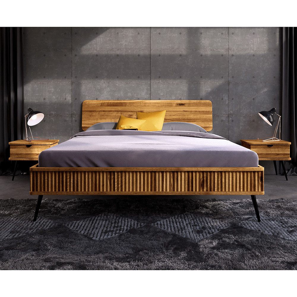 Dieses exklusive 3-teilige Schlafzimmer-Set aus massiver, geölter Wildeiche kombiniert zeitlose Eleganz mit funktionaler Perfektion. Das stilvolle Bett (140x200 cm) mit gerilltem Bettrahmen und einem edlen Holzkopfteil sorgt für eine gemütliche Atmosphäre. Zwei passende Nachttische mit Schubladen bieten praktischen Stauraum und runden das Design harmonisch ab. Die Kombination aus warmem Holz und schlanken Stahlfüßen verleiht dem Set eine moderne Leichtigkeit. Perfekt für alle, die Wert auf Qualität, Design und Langlebigkeit legen.