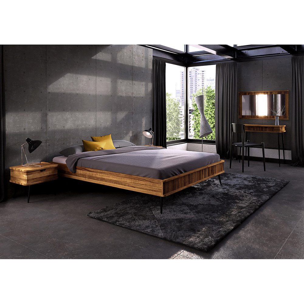 Dieses exklusive 5-teilige Schlafzimmer-Set aus massiver, geölter Wildeiche vereint zeitlose Eleganz mit moderner Funktionalität. Das Bett (140x200 cm) beeindruckt mit einem gerillten Bettrahmen und stabilen Stahlfüßen, während zwei Nachttische praktischen Stauraum bieten. Der stilvolle Schminktisch mit passendem Spiegel schafft eine elegante Beauty-Ecke. Hochwertige Verarbeitung, natürliche Holzmaserung und durchdachte Details machen dieses Set zur perfekten Wahl für ein stilvolles, harmonisches Schlafzimmer mit langlebiger Qualität.