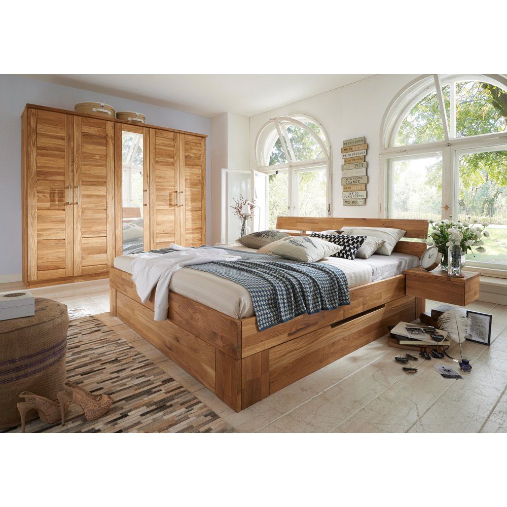 Ein Ort, der zum Träumen einlädt! Ruhe und Natürlichkeit bringen die Echtholzmöbel der Serie NORDDEICH-137 in dein Schlafzimmer. Die hochwertigen Wildeiche Massivholzmöbel sind robust und einzigartig. Die Serie bietet verschiedene Betten in unterschiedlichen Größen, Nachttische und eine Kommode. Ebenso hast du eine große Auswahl an Kleiderschränken in unterschiedlichen Größen. Egal ob wenig oder viel Stauraum, hier ist für jede Raumgröße und für jeden Geschmack etwas Passendes dabei.
