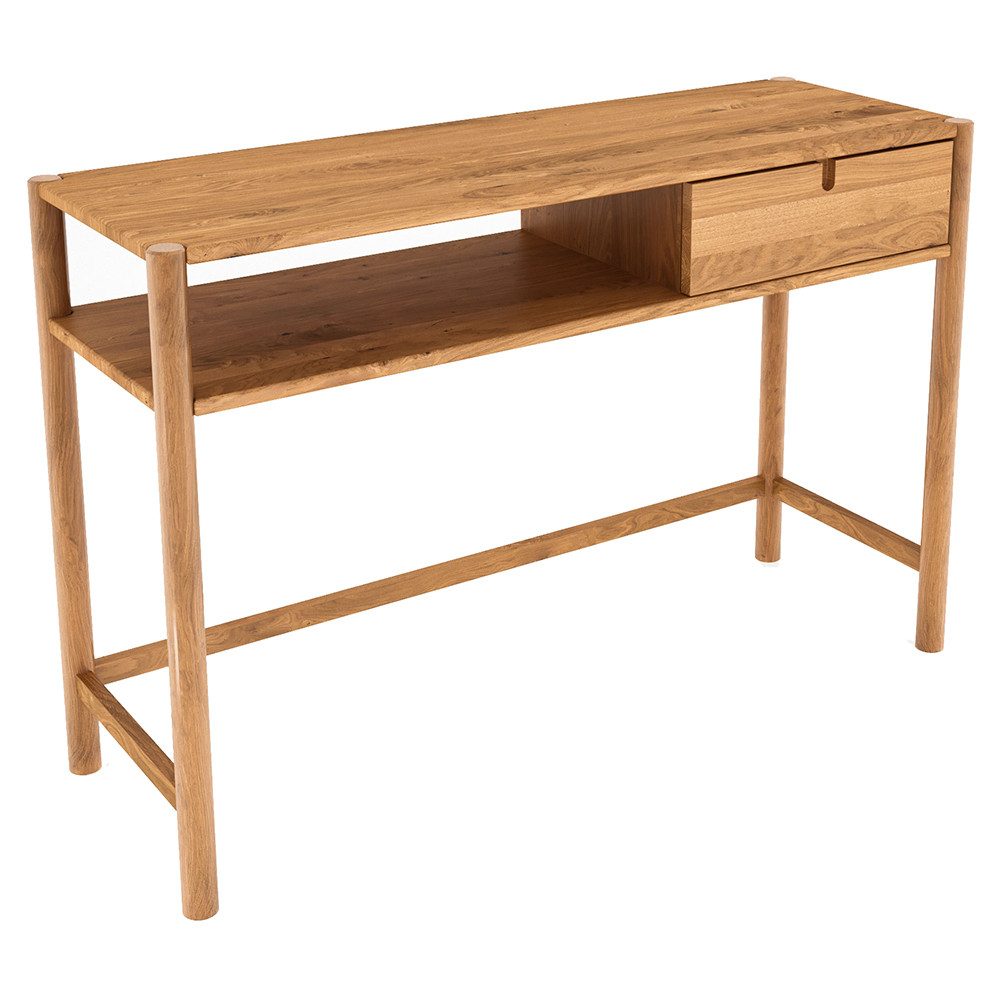 Dieser elegante Schreibtisch aus massivem Eichenholz mit geölter Oberfläche vereint Funktionalität und stilvolles Design.