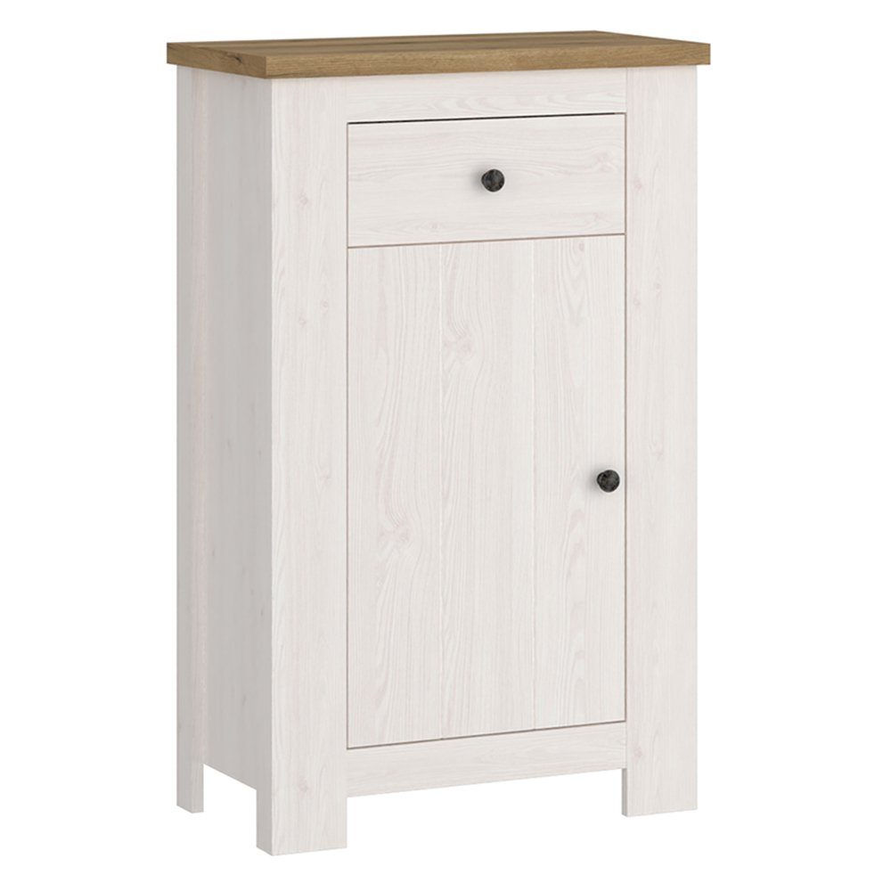 Lass dich mit der Serie COSLADA-129 im Landhausstil von Gemütlichkeit in deinem Zuhause empfangen. Diese charmanten Möbel aus hochwertiger Spanplatte verleihen deinem Eingangsbereich einen Hauch von rustikalem Flair. Die Fronten und der Korpus in Sibiu Lärche in weiß verleihen deinem Set eine freundliche und einladende Atmosphäre, während die Deckplatte in Eiche für einen Hauch von Natürlichkeit und Wärme sorgt.