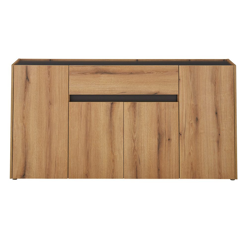Dieses moderne Sideboard vereint warme Eiche Nachbildung mit Anthrazit.