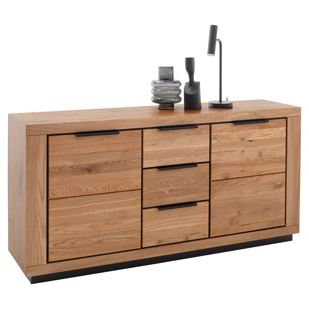 Die massiven, geölten Fronten kombiniert mit einem Korpus in Wildeiche Nachbildung verleihen jedem Raum Wärme und Eleganz. Metallgriffe unterstreichen das zeitlose Design, während die individuell kombinierbaren Elemente dir maximale Flexibilität bieten.