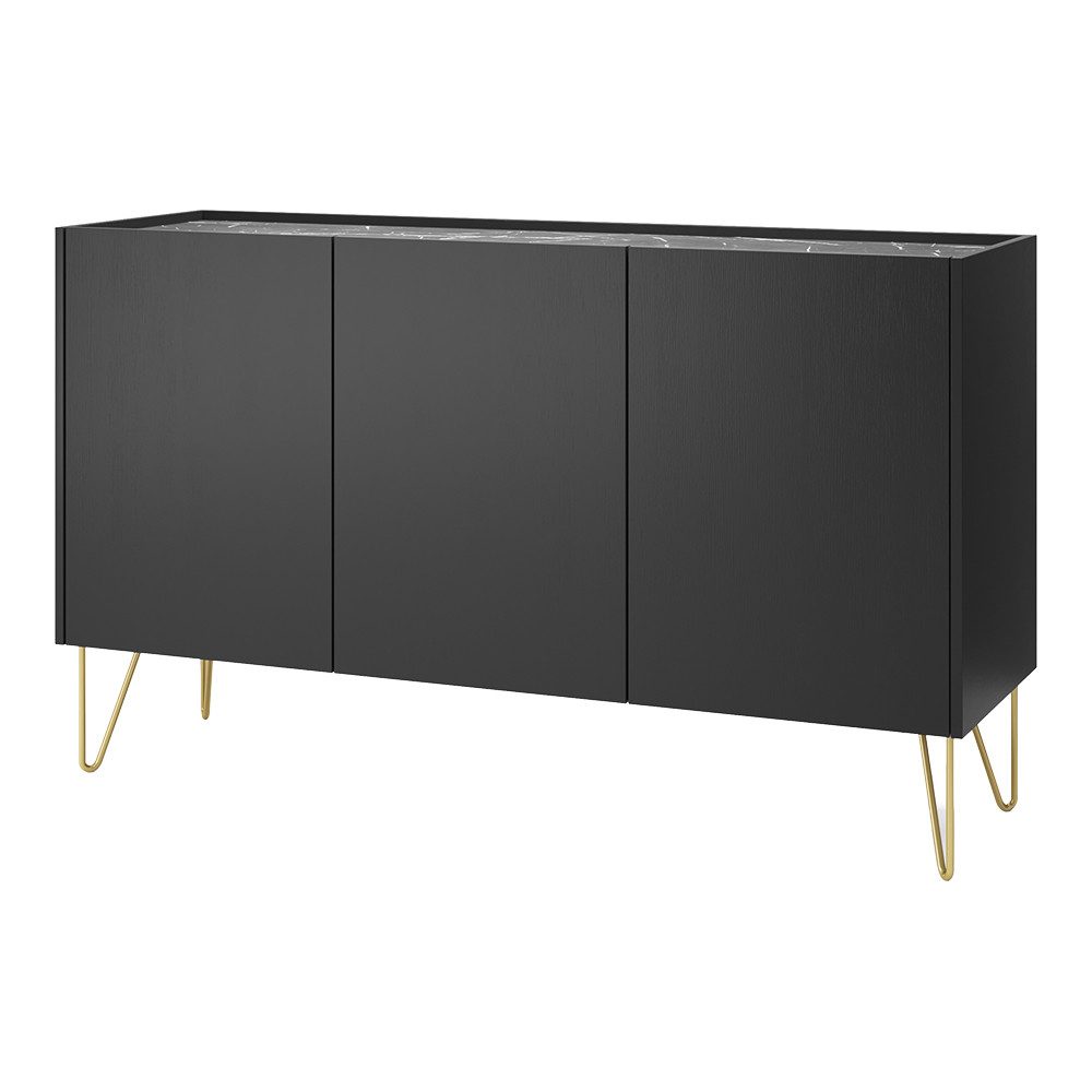Die Möbel beeindrucken mit einem Oberboden in edler Marmoroptik und grifflosen Fronten, die für eine moderne, nahtlose Optik sorgen. Abgerundet wird das elegante Design durch goldfarbene Füße aus Metall, die einen ansprechenden Kontrast bieten und deinem Raum einen glamourösen Touch verleihen.