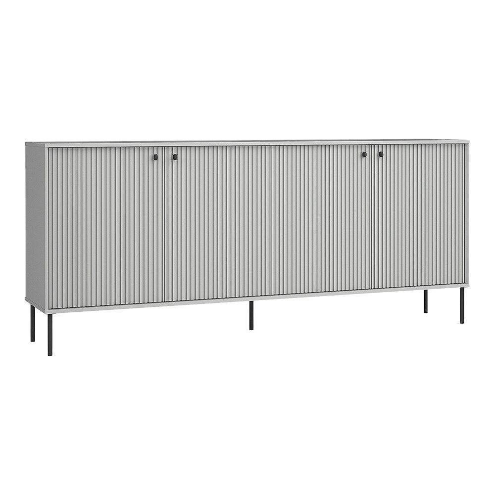 Entdecke unsere stilvolle Wohn- und Esszimmermöbelserie in elegantem grau mit markant gerillten Fronten.