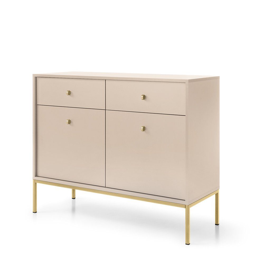 Jedes Stück ist mit eleganten, goldfarbenen Metallgriffen versehen und steht auf einem robusten Metallfußgestell, das wahlweise in schwarz oder goldfarben erhältlich ist.