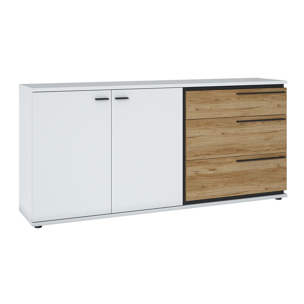 Die Möbelserie SANDVIKA-129 ist die perfekte Wahl für alle, die stilvolle Möbel suchen. Die Serie besticht durch ihre elegante Optik in Alpinweiß und dem ansprechenden Catania Eiche Nb. Dekor welches durch die Absetzungen in schwarz matt zusätzlich veredelt wird. Die Kombination aus diesen beiden Farben verleiht der Serie ein modernes und zeitloses Design.