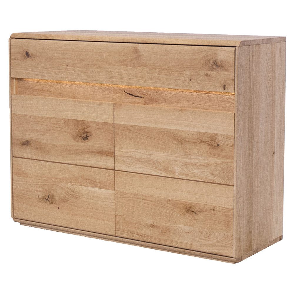 Klein, aber voller Wirkung: Dieses Sideboard überzeugt mit massivem Eichenholz, klarer Formensprache und einer sanft beleuchteten Applikation.
