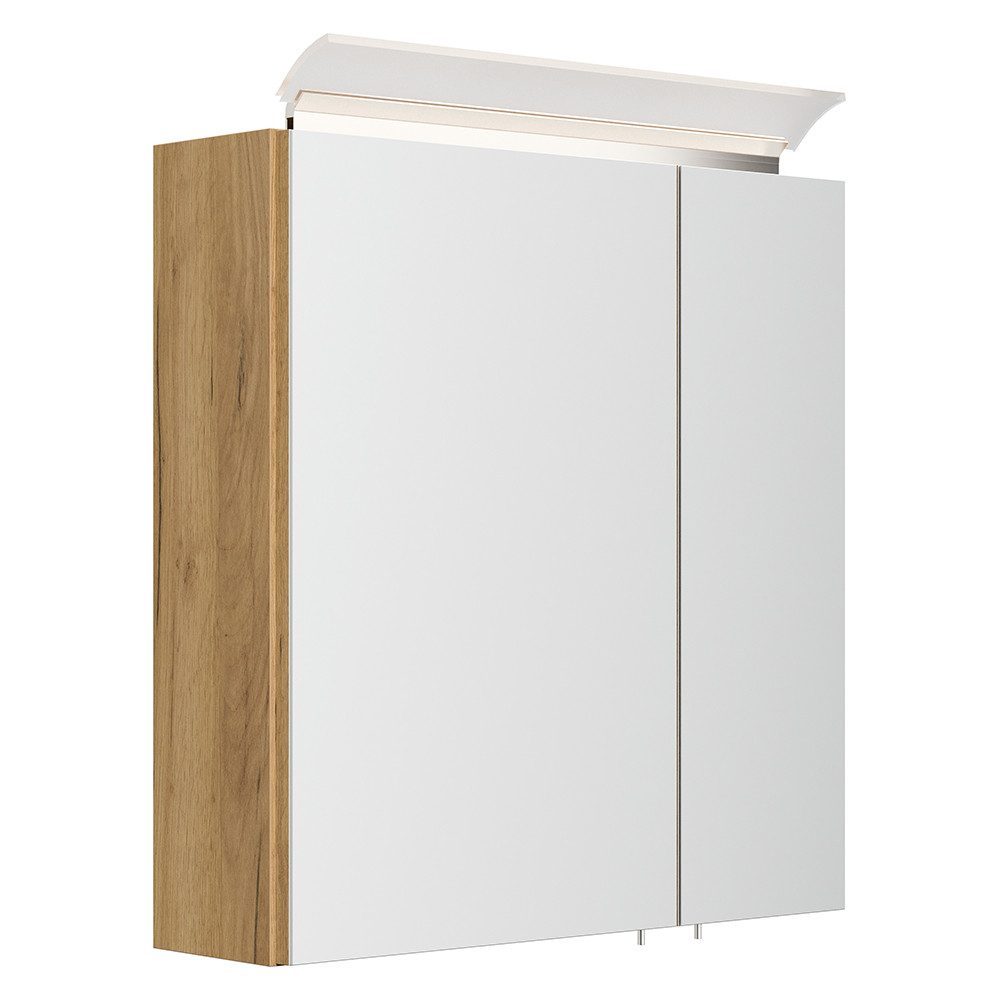 Mit zwei Türen und zwei verstellbaren Glaseinlegeböden bietet der Schrank ausreichend Stauraum für deine Kosmetikprodukte und Badutensilien. Die LED-Aufsatzleuchte aus Acrylglas sorgt für eine gleichmäßige Beleuchtung und setzt dein Badezimmer in ein angenehmes Licht. Eine zusätzliche Kombibox mit Lichtschalter und Steckdose ermöglicht dir, elektronische Geräte sicher und bequem zu betreiben. Dieser Schrank bietet nicht nur viel Platz, sondern auch eine stilvolle, funktionale Lösung für dein Badezimmer.