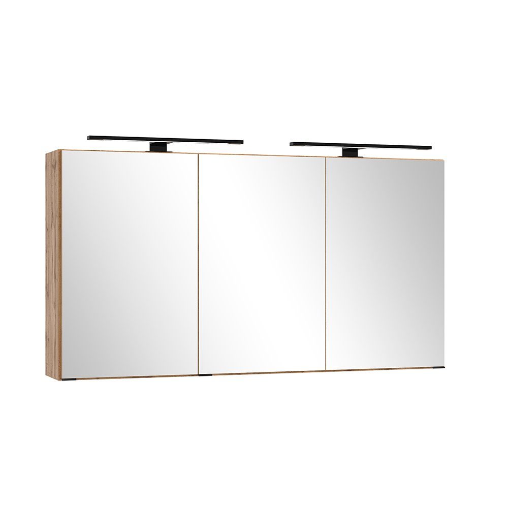 Entdecke unsere hochwertige Badezimmermöbelkollektion im modernen Holzfarbton Wotan Eiche Nb., gekennzeichnet durch ihre angesagte, gerillte Frontgestaltung. Jedes Möbelstück ist mit einer eleganten, schwarzen Metall-Griffleiste ausgestattet und bietet sanft schließende Auszüge und Türen dank der integrierten Softclose-Funktion.