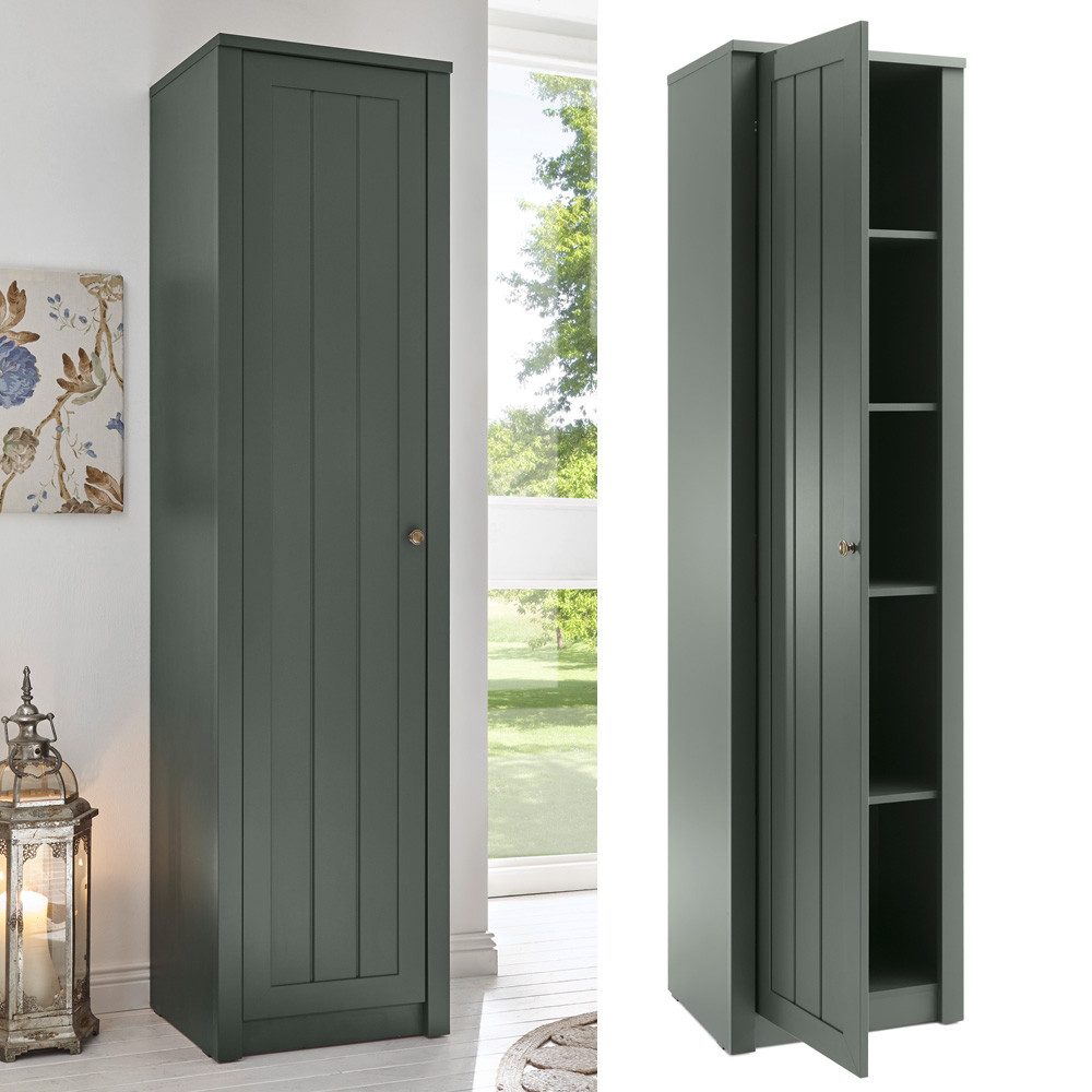 Landhaus-Stil im edlen grün. Klassisch, gemütlich und warm, zugleich zeitgemäß. Die edlen silberfarbenen Griffe aus Metall im Antik-Look runden das Erscheinungsbild ab. Mit der Serie ATHEN-61 bieten wir dir eine tolle Wohn & Garderoben Möbel-Serie an. Viele Einzelmöbel kannst du dir zu einer Wohnwand zusammen stellen oder einen unserer Kombinationsvorschläge auswählen. Die Vitrinen, Sideboards, Schränke, Lowboards und Regale können beliebig kombiniert werden. Die Schränke mit Glaseinsatz werden mit der passenden Beleuchtung geliefert.