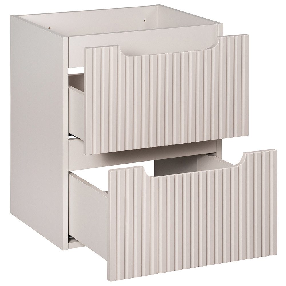Diese Serie besticht durch ihre klaren, geradlinigen Formen und zeitlose Eleganz, hervorgehoben durch vertikale Rillen an den Fronten, die jedem Stück Tiefe und Charakter verleihen.