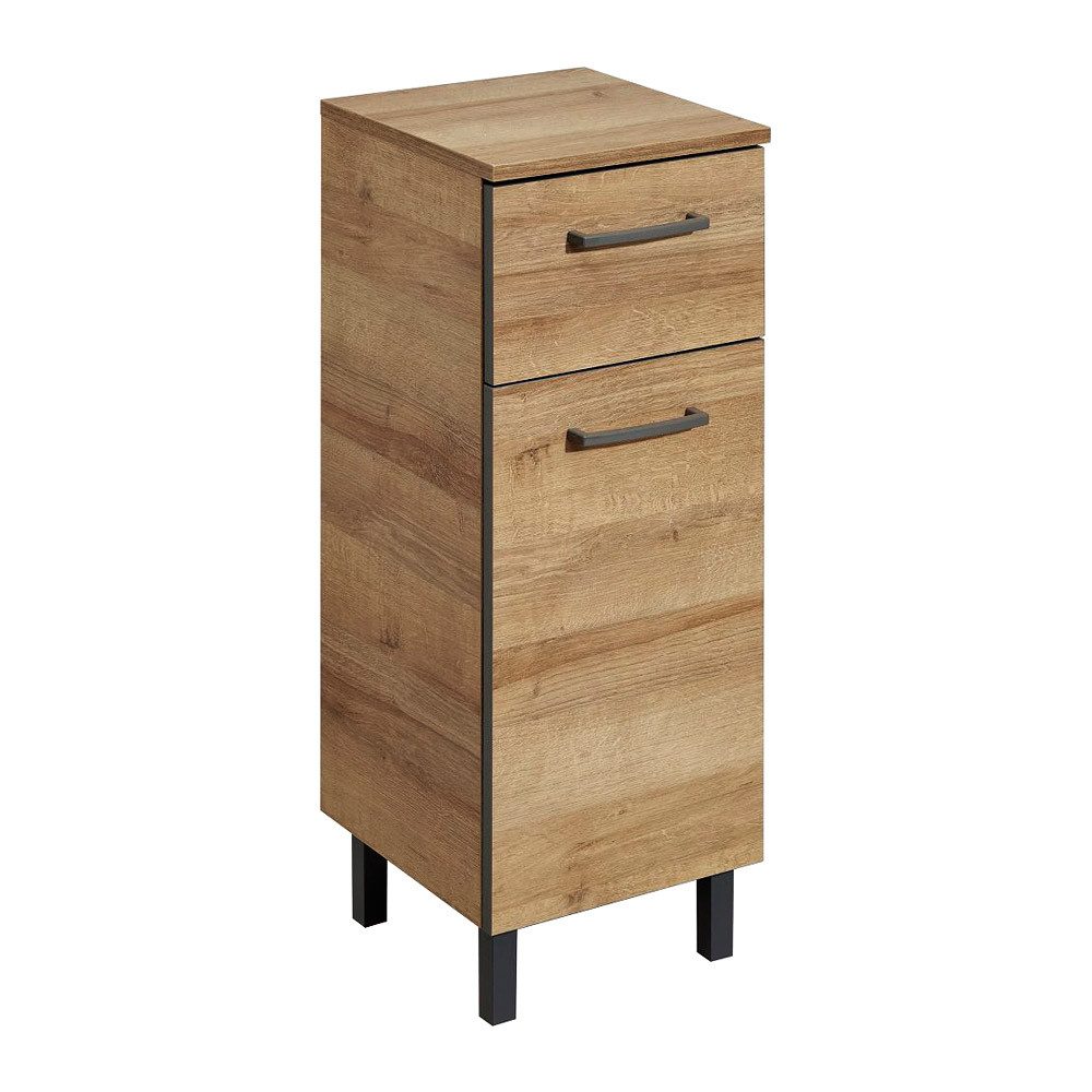 Die Badmöbel-Serie RECIFE-66 sorgt für ein besonders gemütliches Ambiente. Die Möbel-Serie strahlt durch die neue Trendfarbe Eiche Riviera Nb. viel Wärme aus und sorgt für Behaglichkeit im Bad. Zudem setzen die grauen Kanten und Griffe sowie Füße schöne und moderne Akzente. Die verschiedenen Schrankvarianten erlauben eine individuelle Gestaltung, ausgerichtet nach Platz und Stauraumbedarf. Integrierte Türdämpfung, ABS-Kanten, Touchwood Oberfläche mit Melaminharz-Beschichtung machen diese Badezimmermöbel auch qualitativ hochwertig.