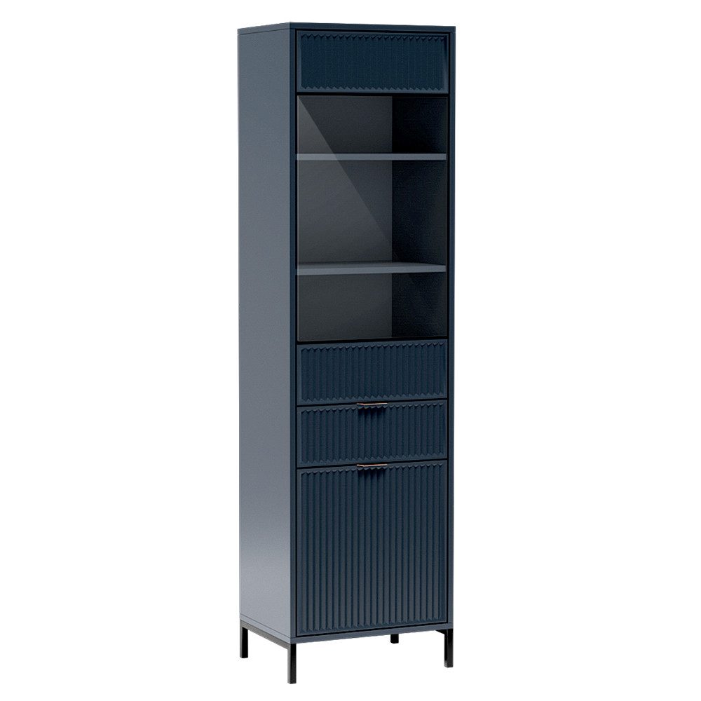 Tauche ein in die Welt der Eleganz und des Komforts! Unsere Wohnmöbel sind in Kaschmir beige oder Indigo blau erhältlich. Die Fronten in Rillenoptik, begleitet von goldfarbenen oder rosegoldfarbenen Griffen und schwarzen Metallfüßen, bieten dir die perfekte Gelegenheit, deine 4-Wände in einen Ort der stilvollen Erholung zu verwandeln.