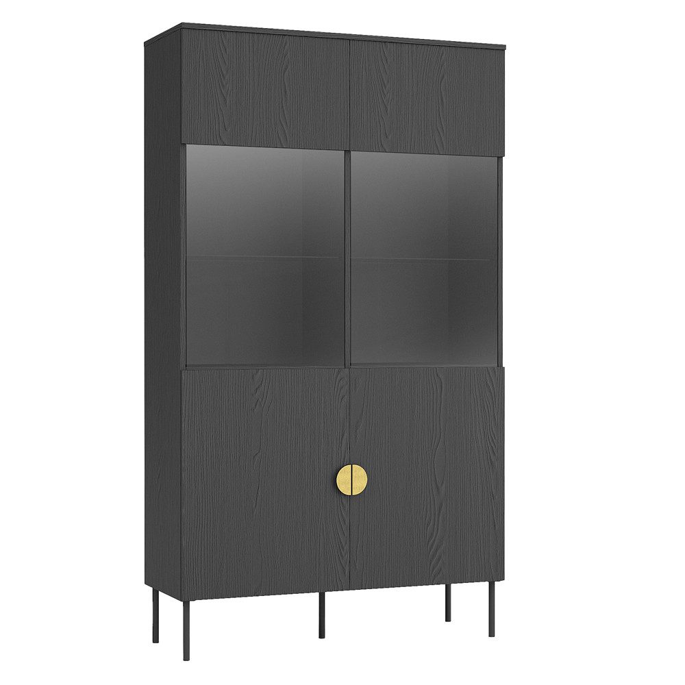 Erhältlich in warmem Eiche-Dekor oder elegantem Schwarz, passt diese Serie perfekt in moderne und klassische Wohnräume. Besonders herausstechend sind die runden Griffe, die wie ein Halbmond an den Fronten erscheinen und den Möbeln einen einzigartigen, charmanten Look verleihen. Die Schubladen sind mit einer Softclose-Funktion ausgestattet, um sanftes und geräuschloses Спрятать zu ermöglichen. Diese Serie kombiniert Stil und Komfort, um deinem Zuhause einen luxuriösen, modernen Charakter zu verleihen.