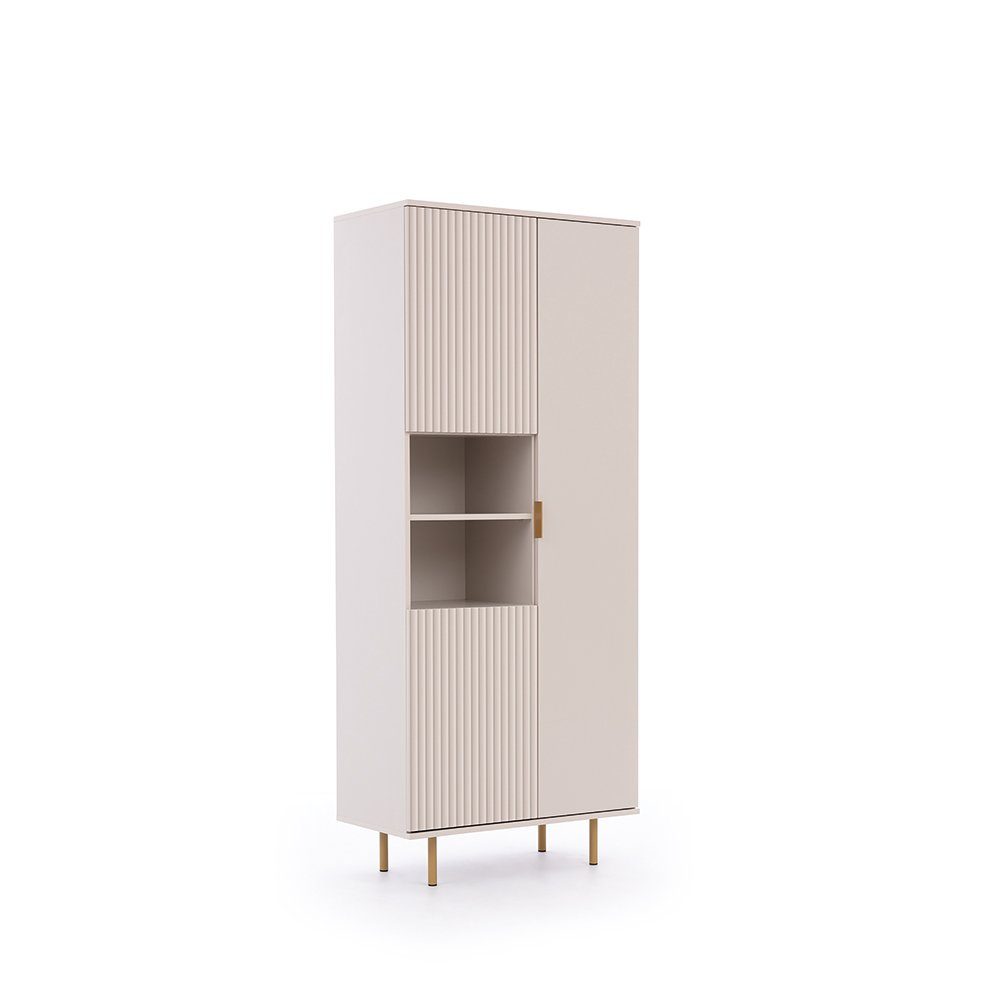 Die Fronten mit stilvoller Rillenoptik und goldfarbenen Metallgriffen und -füßen setzen ein luxuriöses Statement.