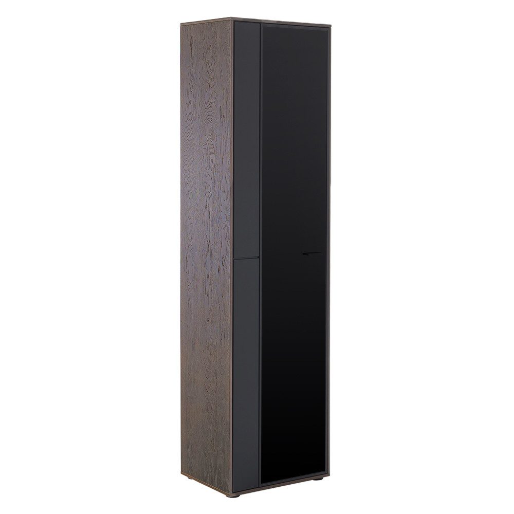 Die Griffe und Füße aus anthrazitfarbenem Metall unterstreichen das moderne Design, während die Türen mit EGS Schwarzglas und anthrazitfarbenem Alurahmen für einen Hauch von Raffinesse sorgen.