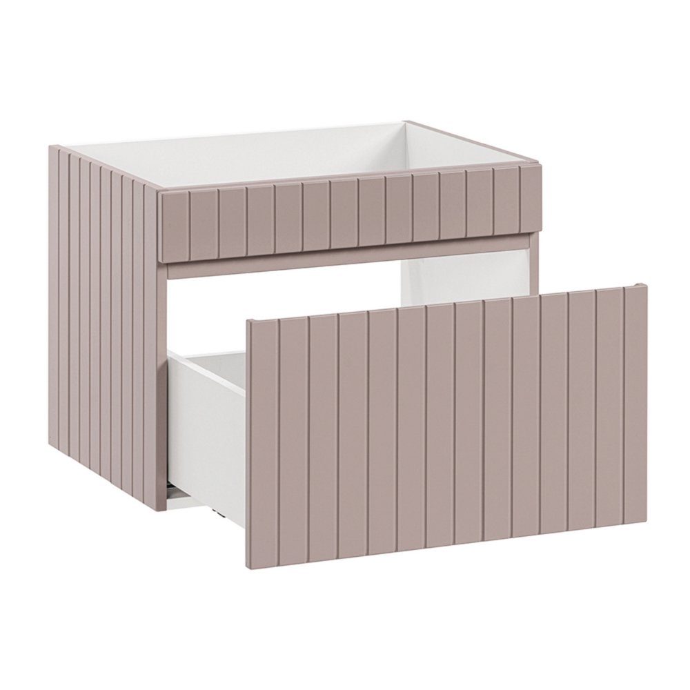 Erlebe Funktionalität in Kombination mit stilvollem Design - in einem eleganten Altrosa-Ton und im modernen Rillen-Design setzt der Waschbeckenunterschrank der Serie IRAKLIO-56-ROSE stilvolle Akzente in deinem Badezimmer. Ein griffloser Auszug bietet reichlich Stauraum für deine Badezimmerutensilien, während die Softclose-Funktion ein sanftes Спрятать garantiert – ganz ohne lästige Geräusche.