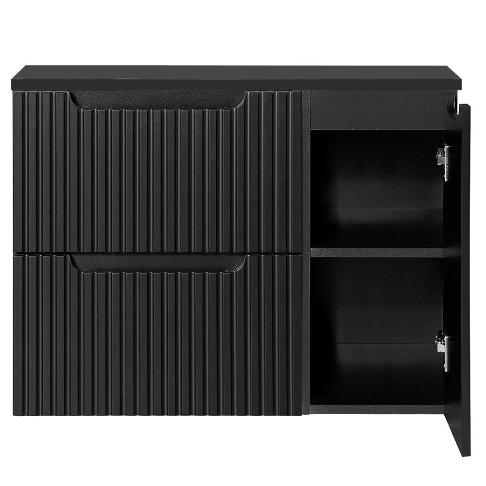 Diese Serie besticht durch ihre klaren, geradlinigen Formen und zeitlose Eleganz, hervorgehoben durch vertikale Rillen an den Fronten, die jedem Stück Tiefe und Charakter verleihen.