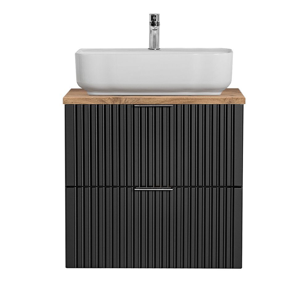 Das optische Highlight der Badezimmermöbel sind die aufwändig gearbeiteten Fronten in Rillenoptik, die das elegante Erscheinungsbild auf besondere Art und Weise hervorheben.