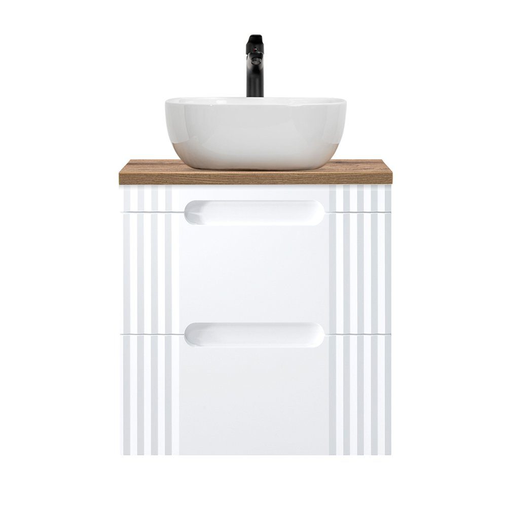Das moderne Design des Waschtisch-Unterschranks wird durch die seitlichen Rillen perfekt abgerundet. Dieses Detail verleiht deinem Raum eine besondere Note und macht den Unterschrank zu einem echten Hingucker.