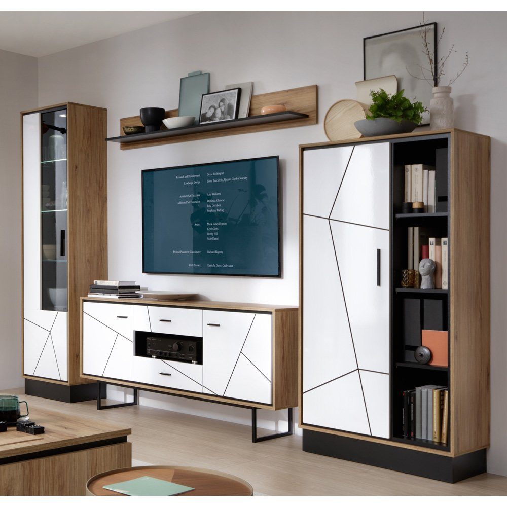 Geschmackvoll und individuell - die Serie BRISTOL-129 bringt Gemütlichkeit und Stil in dein Zuhause. Die Wohn-/Ess- sowie Schlafzimmermöbel sind ein echter Hingucker. Die Korpen in warmer Catania Eiche Nb. bilden einen tollen Kontrast zu den modernen und auffälligen Fronten in weiß Hochglanz mit graphischer schwarzer Rillenfräsung. Aber nicht nur optisch punktet die Serie auf ganzer "Linie", sondern überzeugt ebenso durch Qualität und Funktionalität. Neben pflegeleichten Oberflächen bieten die Möbel Türen mit Softclose Schließsystem sowie Schubkästen mit Vollauszug. Kombiniere die Möbel ganz nach deinen persönlichen Bedürfnissen oder wähle aus einem unserer Kombinationsvorschläge das passende für dein Zuhause aus.