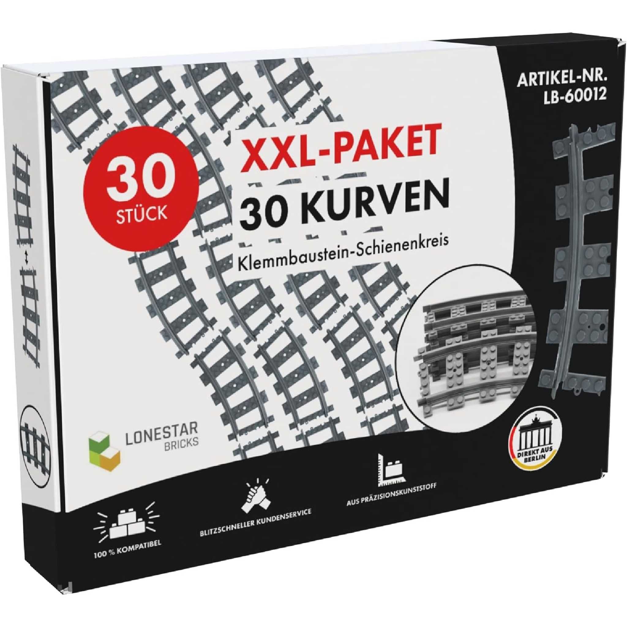 LB-60012 - 30 STÜCK SCHIENEN KURVEN: Das perfekte Zubehör-Set für deine Klemmbaustein-Welten Du liebst es, mit Klemmbausteinen kreative Welten zu erschaffen wie z.B. einen Bahnhof mit Güterzug oder dein nächstes Klemmbaustein Technik-Projekt? Du möchtest deine Eisenbahn-Landschaft erweitern und spannender gestalten?