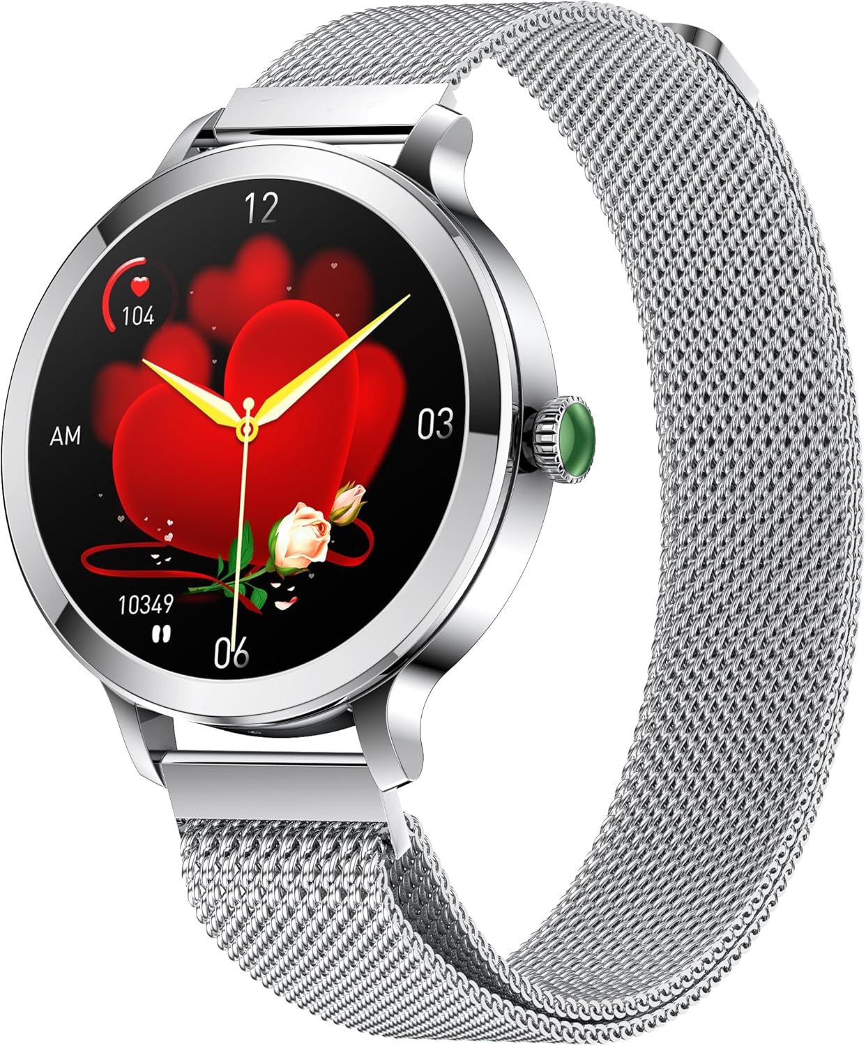 Die Damen Smartwatch überzeugt durch ein 1,106 Zoll AMOLED Display mit brillanter Farbwiedergabe und klarer Auflösung. Das elegante Gehäuse sorgt für einen stilvollen Auftritt und macht die Uhr zum perfekten Begleiter für Alltag, Freizeit oder Business.