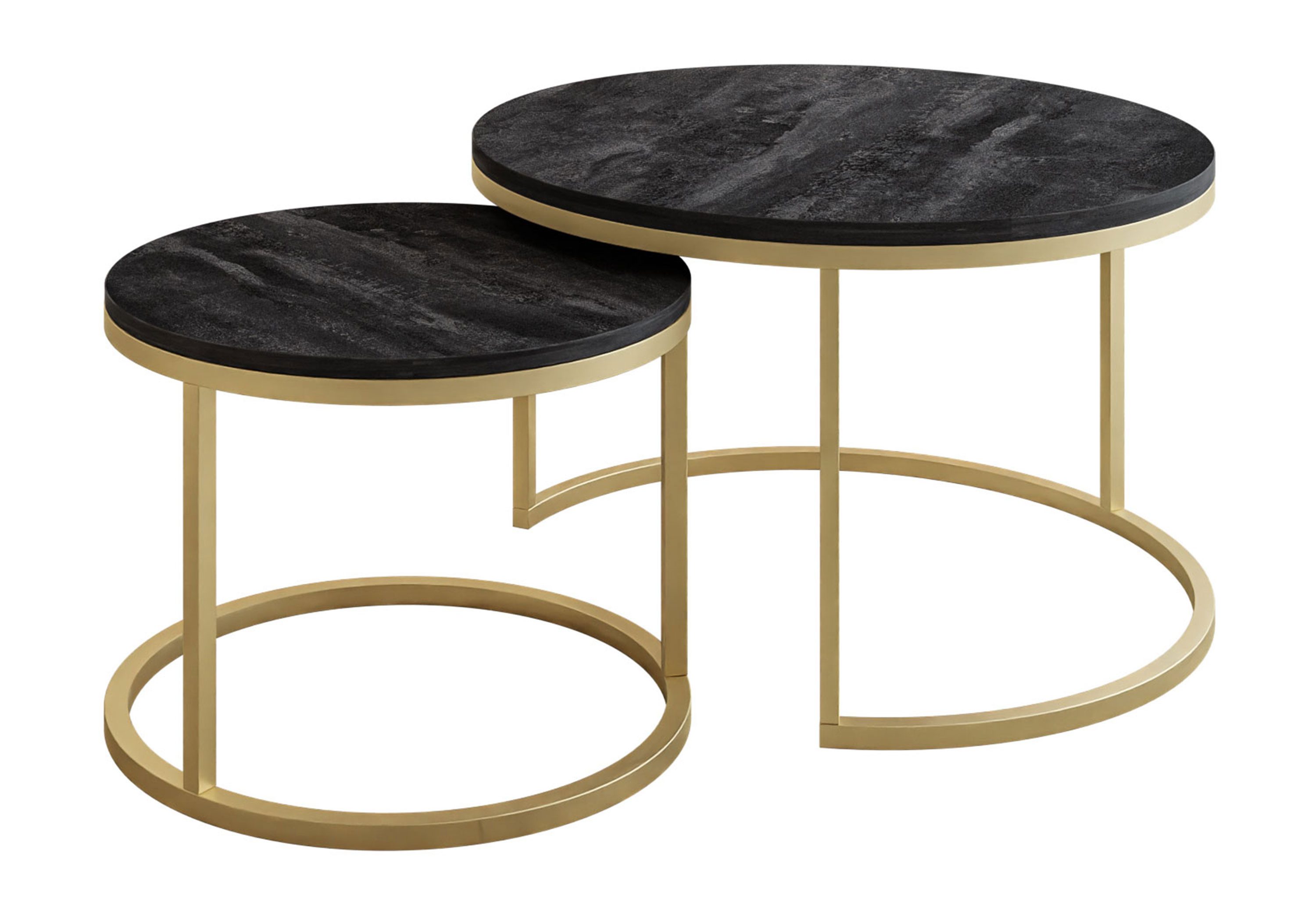 Die Tische sind unterschiedlich groß, so dass man leicht einen unter den anderen schieben kann, um eine originelle Komposition zu schaffen. Es ist auch ideal für Räume mit wenig Platz.