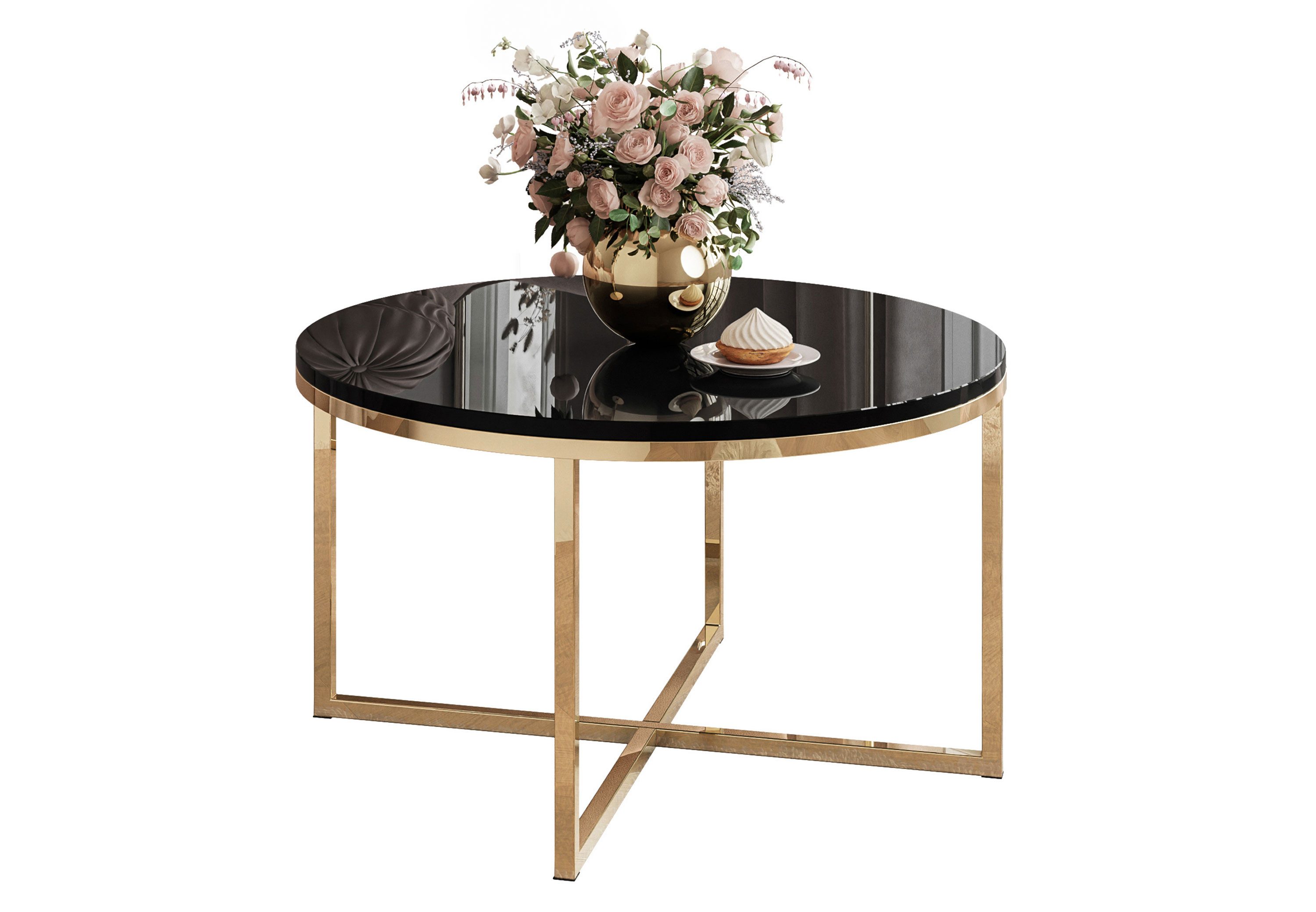 Dieser moderne runde Tisch besticht durch seine elegante Farbgebung und bleibt dabei schlicht, zeitlos und sparsam im Ausdruck. Das goldene Metallgestell des Tisches ist sehr robust und widerstandsfähig gegen Beschädigungen. Da er klein und leicht zu transportieren ist, kann er je nach Bedarf an verschiedenen Stellen im Wohnzimmer platziert werden.