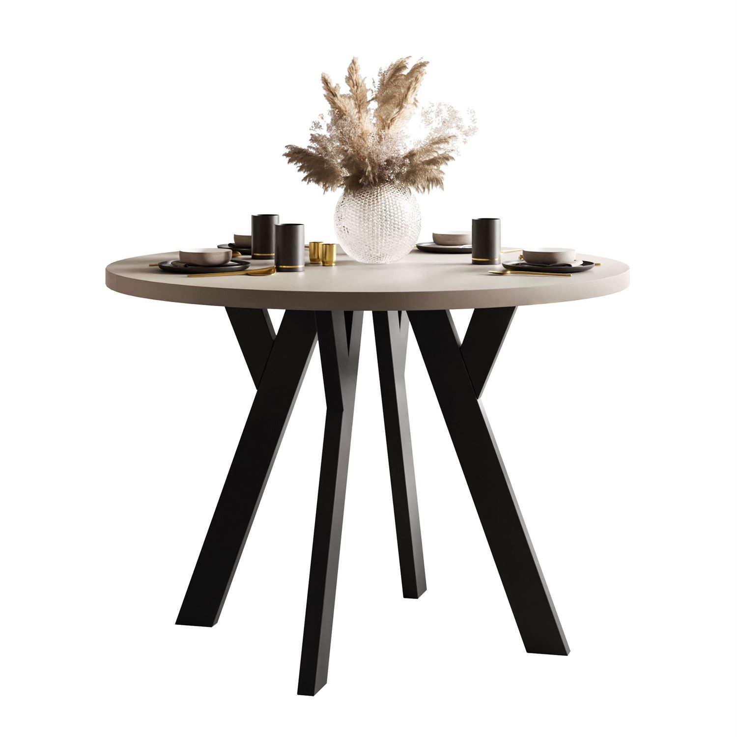 Der Tisch steht auf pulverbeschichteten Metallbeinen, die dem Gesamtbild einen modernen, leicht industriellen Charakter verleihen. Die minimalistische Konstruktion sorgt dafür, dass sich der VOLTA-Tisch wunderbar in verschiedenste Einrichtungsstile einfügt – vom Loft bis zum skandinavischen Wohnstil.