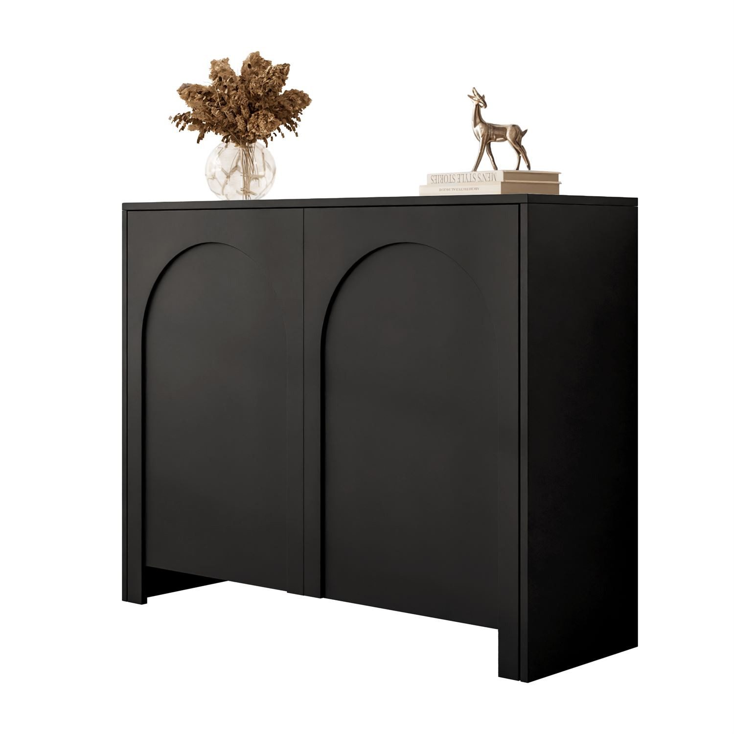Hinter der zweitürigen Front verbirgt sich ein geräumiger Stauraum, ideal zur Aufbewahrung alltäglicher Gegenstände und für Ordnung im Wohnraum. Der Push-to-Open-Mechanismus betont den minimalistischen Stil des Möbelstücks und sorgt für maximalen Bedienkomfort.