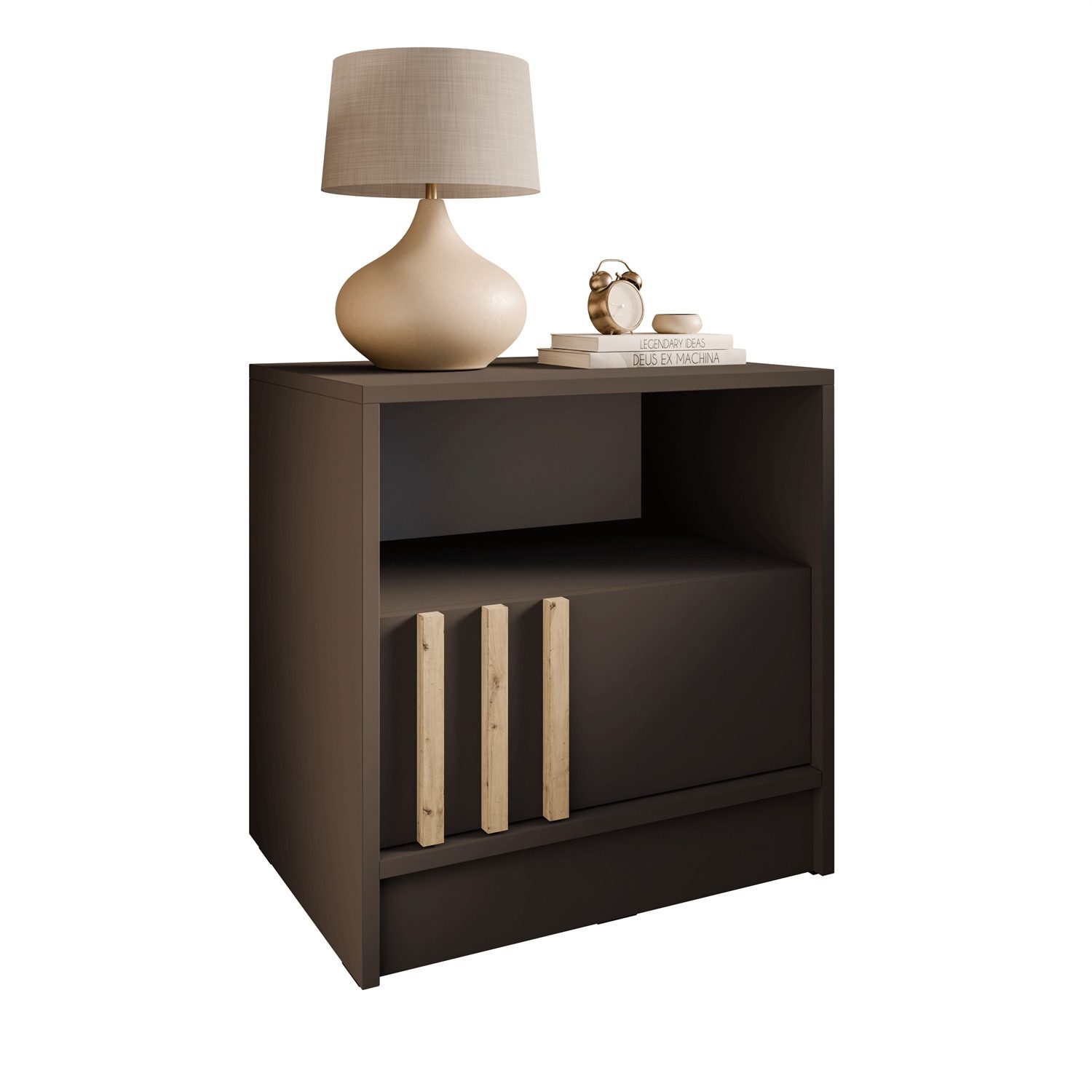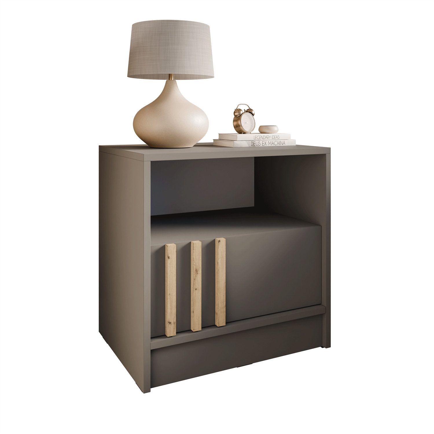 Der Nachttisch NELA ist in vier Farbvarianten erhältlich. Dank dieser Vielfalt lässt er sich leicht in moderne wie auch klassischere Räume integrieren. Charakteristische drei vertikale Dekor-Lamellen verleihen dem Möbelstück einen einzigartigen Charakter, betonen sein modernes Design und dienen gleichzeitig als Griff der Schublade – eine praktische und ästhetische Lösung.