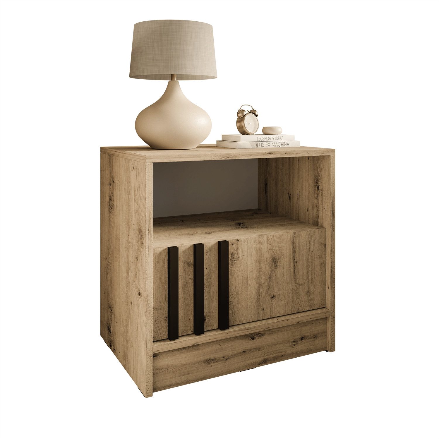Hergestellt aus hochwertigen laminierten Möbelplatten, zeichnet sich der Nachttisch durch Langlebigkeit und Alltagstauglichkeit aus. Seine Oberfläche ist leicht zu reinigen, und das Möbelstück wirkt stabil und solide. Es ist ein Nachttisch, der nicht nur schön aussieht, sondern auch lange Freude bereitet.