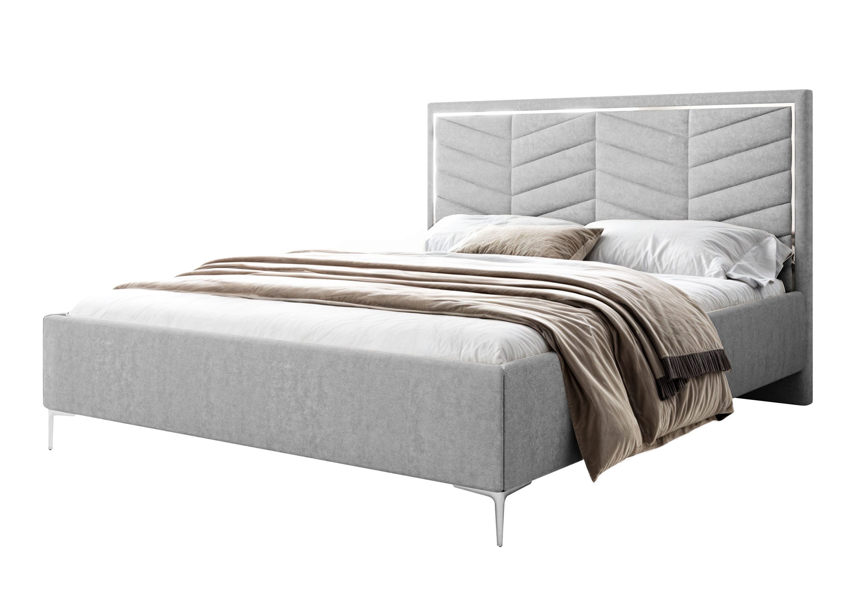 Beim AURORA-Bett verleihen dezente Abschlusselemente Ihrem Schlafzimmer eine luxuriöse Ausstrahlung und bereichern sein Erscheinungsbild zusätzlich. Der silbere Streifen am Kopfteil ist ein außergewöhnliches Detail, das dem Raum Eleganz verleiht und seinen einzigartigen Charakter zart unterstreicht. Ein weiteres Unterscheidungsmerkmal unseres Bettes ist die elegante, mit geometrischen Nähten verzierte Kopfstütze, die in zwei Größen zur Auswahl steht.