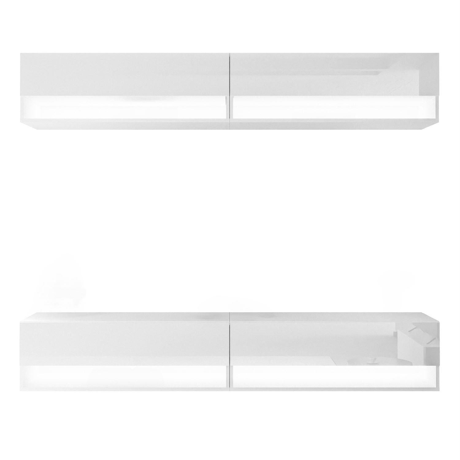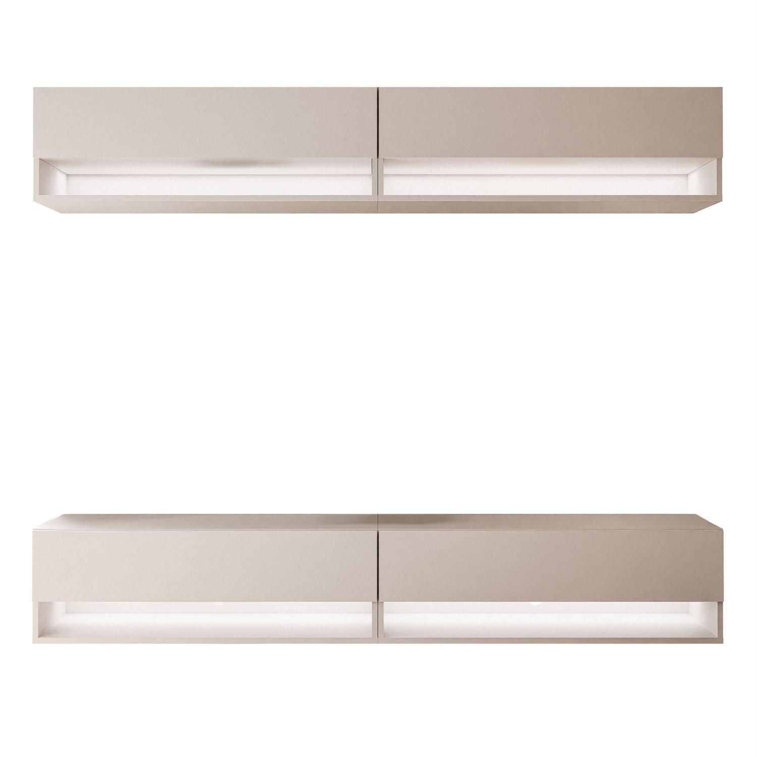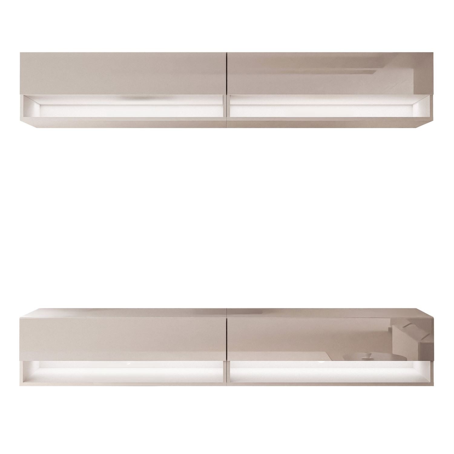 Fügen Sie Ihrem Interieur einen modernen Akzent hinzu, mit unserer stilvollen Hänge-Wohnwand, die in drei eleganten Farben erhältlich ist: Kaschmir matt, Kaschmir glänzend und Weiß glänzend. Dieses vielseitige Möbelstück besteht aus vier Elementen, jeweils 90 cm breit, was viel Stauraum und Präsentationsfläche bietet.