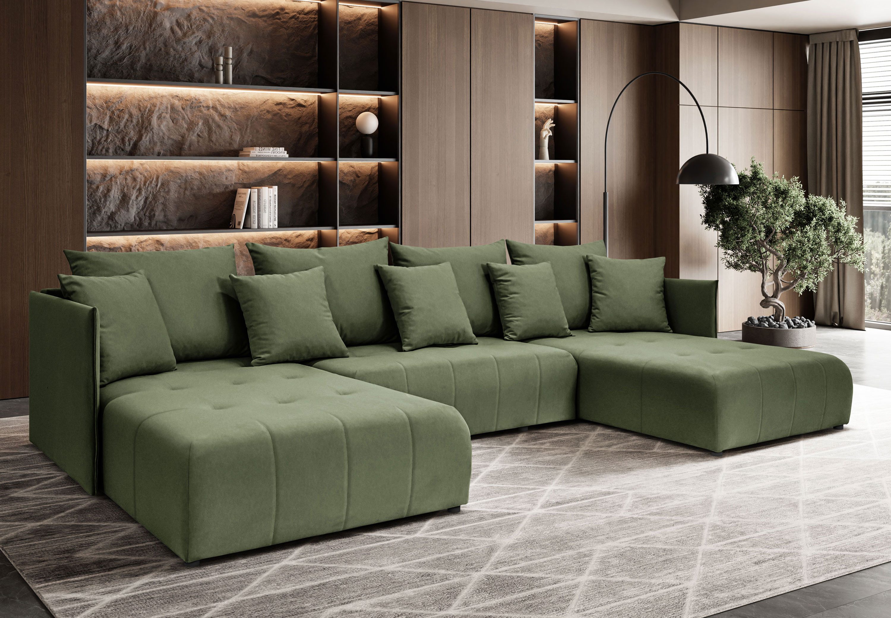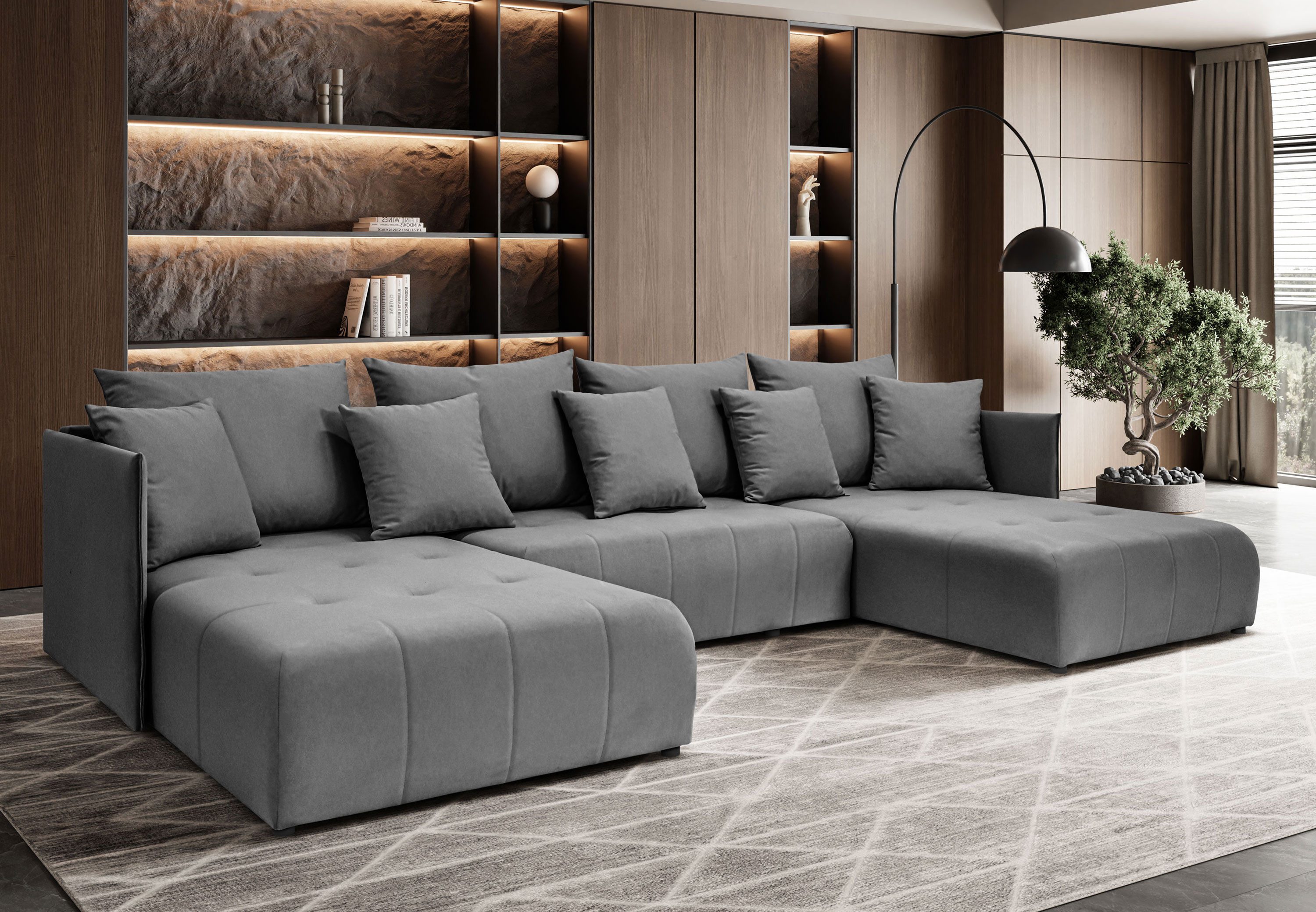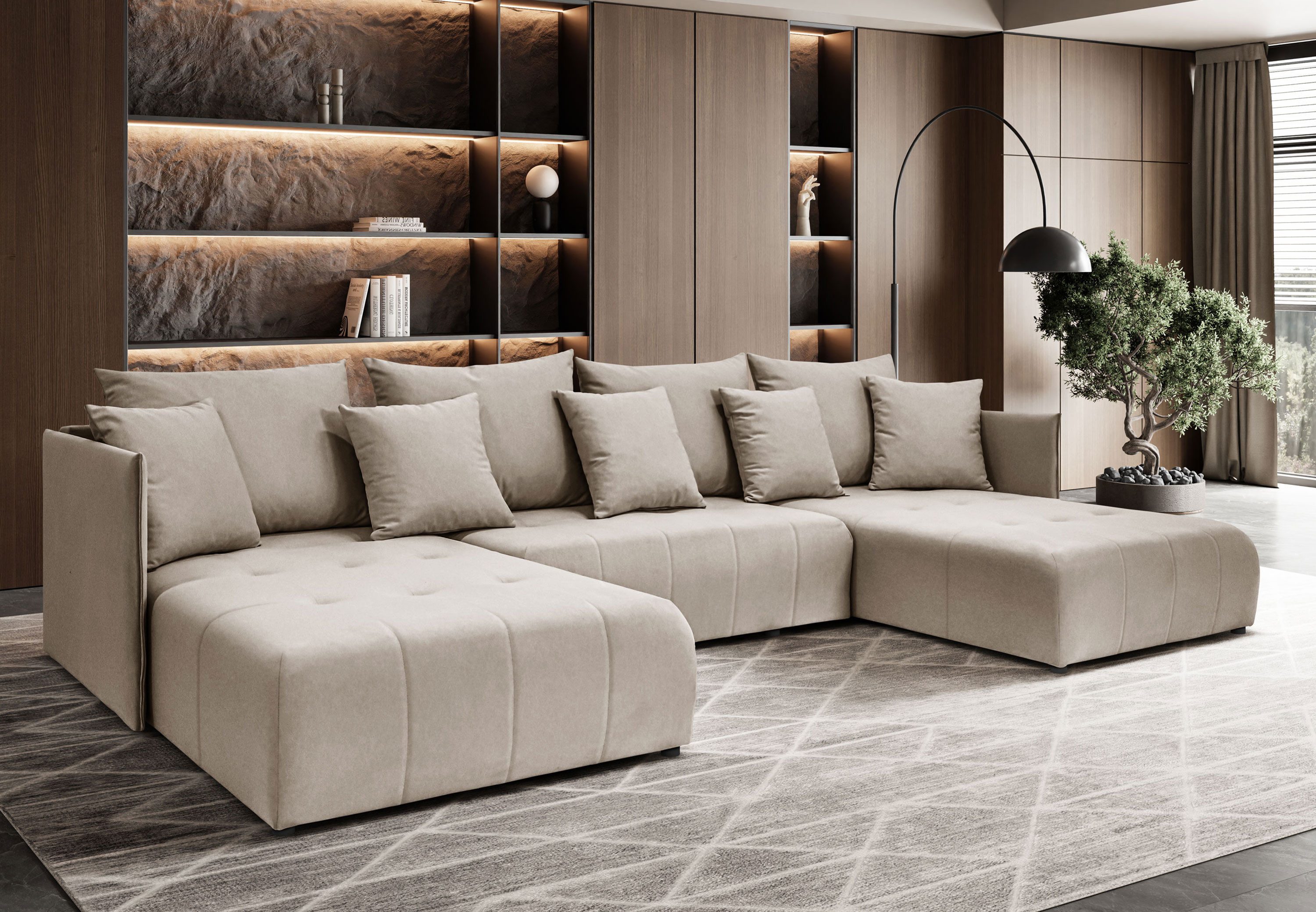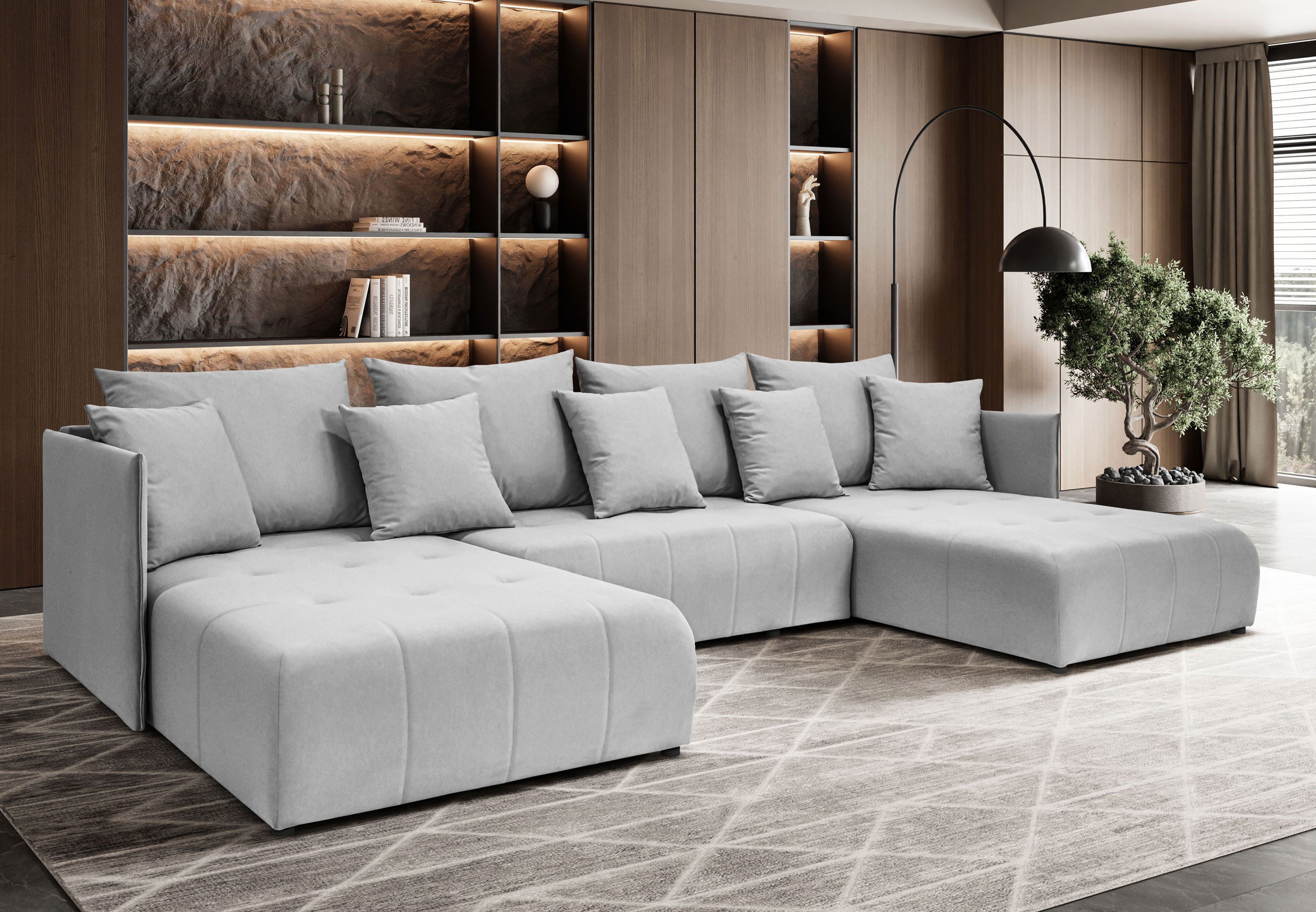 Das Ecksofa APOLLO ist eine harmonische Verbindung von Stil und Praktikabilität, die sich perfekt in verschiedene Innenraumgestaltungen einfügt. Gefertigt aus hochwertigem Stoff verleiht es dem Raum Klasse und Behaglichkeit. Seine U-Form bietet viel Platz zum Entspannen und schafft eine komfortable Relaxzone für die ganze Familie. Daher eignet es sich hervorragend für größere Räume und verleiht ihnen einen eleganten Charakter.