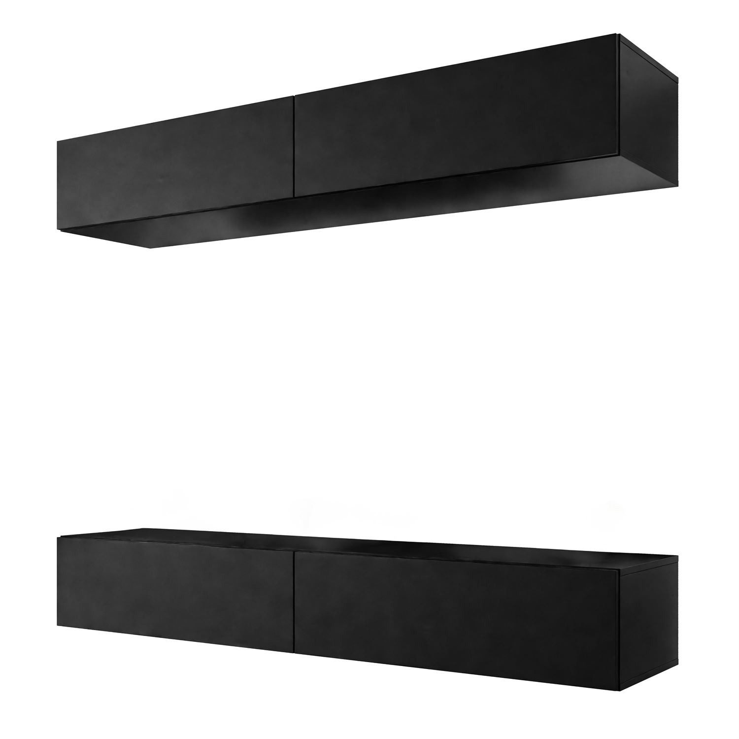 Die stilvolle schwarze Wohnwand COLETTE, bestehend aus zwei 175 cm breiten Schränken, bereichert Ihre Einrichtung mit einzigartigem Charme und funktionaler Organisation.
