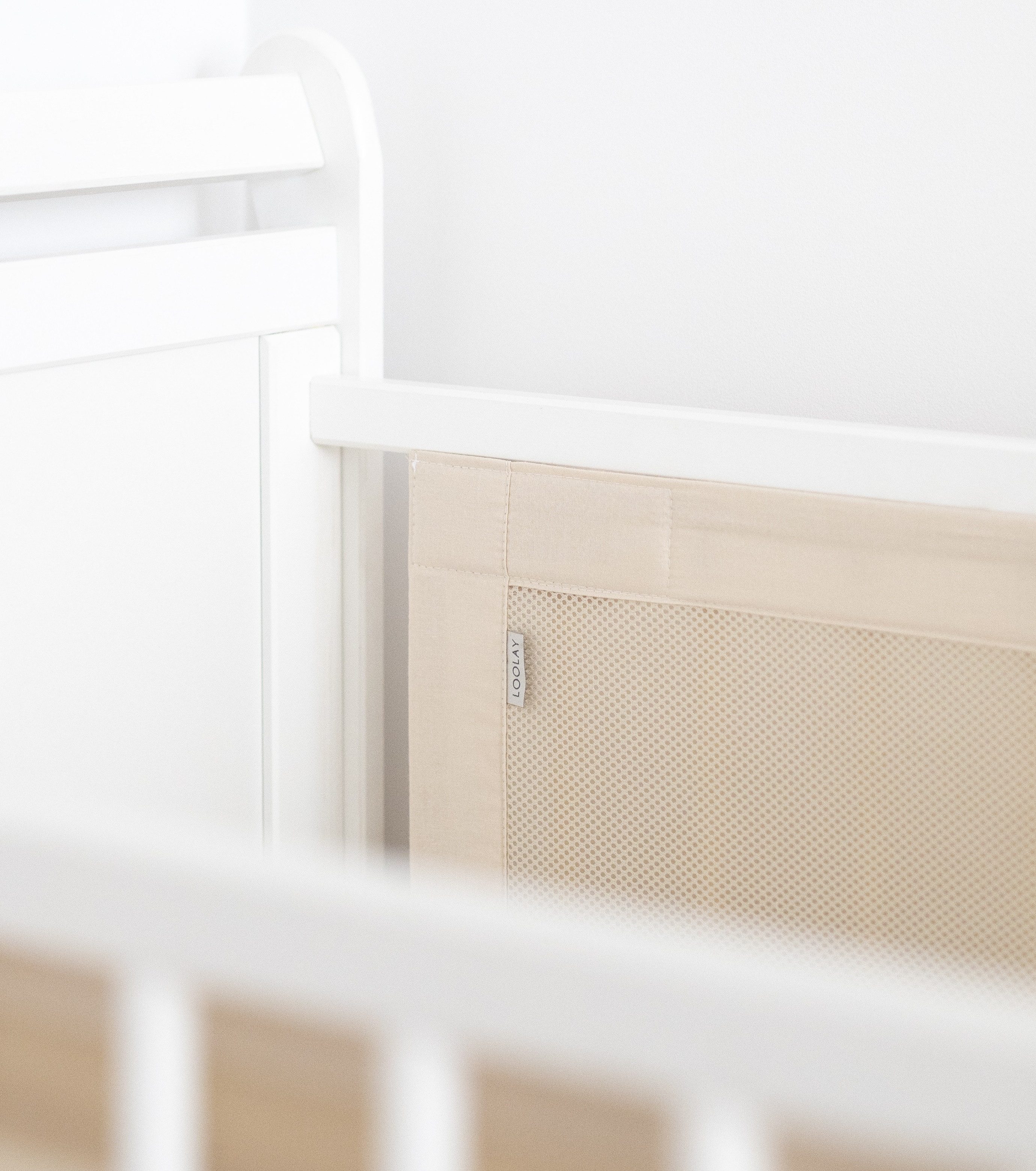 Warnhinweise | Nur ein korrekt gespanntes Produkt kann verwendet werden (so fest spannen, dass es nicht herunterhängt). Bitte achten Sie auf die korrekte Montage - das Produkt muss an den äußeren Sprossen der Bettseitenwand befestigt werden. Überprüfen Sie regelmäßig den Spannungszustand des Produkts. Der Klettverschluss muss hinter den letzten (äußeren) Sprossen des Bettrandes geschlossen und das Ende unter dem vorletzten Sprossen positioniert werden, um die Befestigung zusätzlich in einer Position zu stabilisieren (siehe Bilder). |