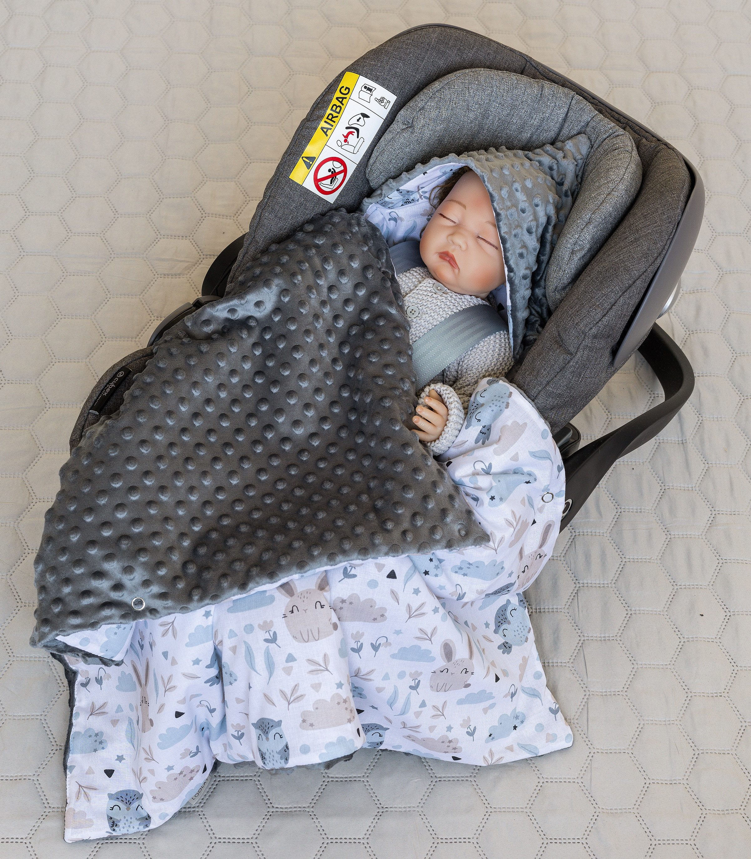 ► perfekt für den Winter, wenn Sie Ihr Baby gut in eine Decke einwickeln. Dabei hilft ein zusätzlicher Druckknopf, mit dem unsere Decke ausgestattet ist