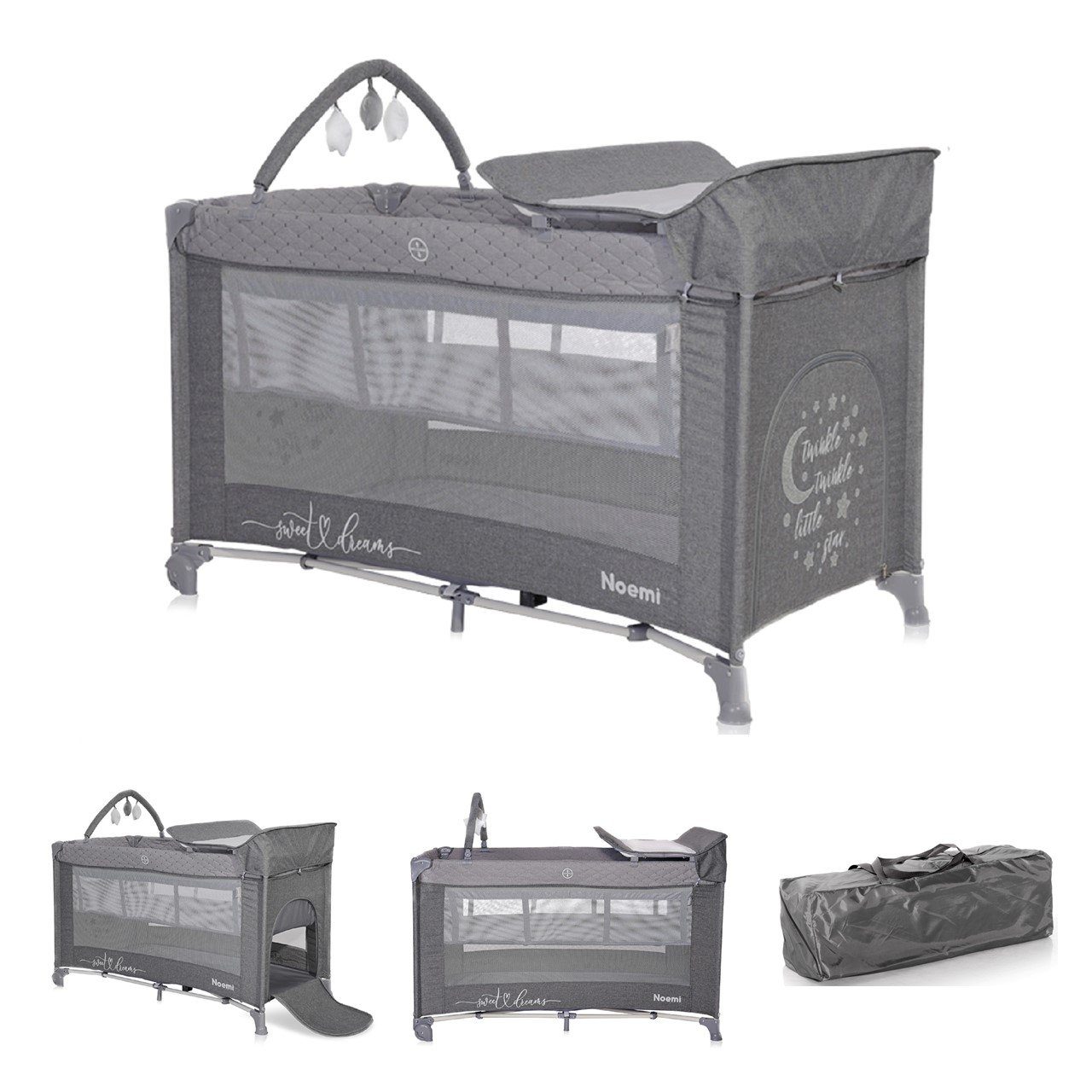 Впередe Informationen Перейти к товару Lorelli Reisebett Noemi 2 Ebenen, Wickelauflage, Spielbogen, Tragetasche, Räder: