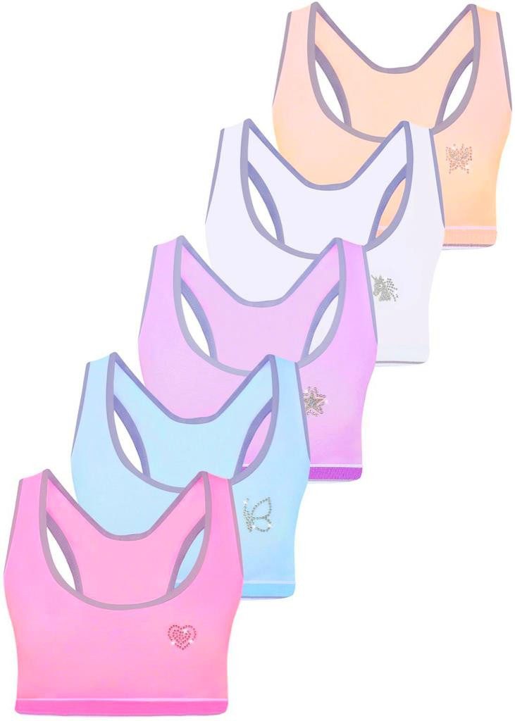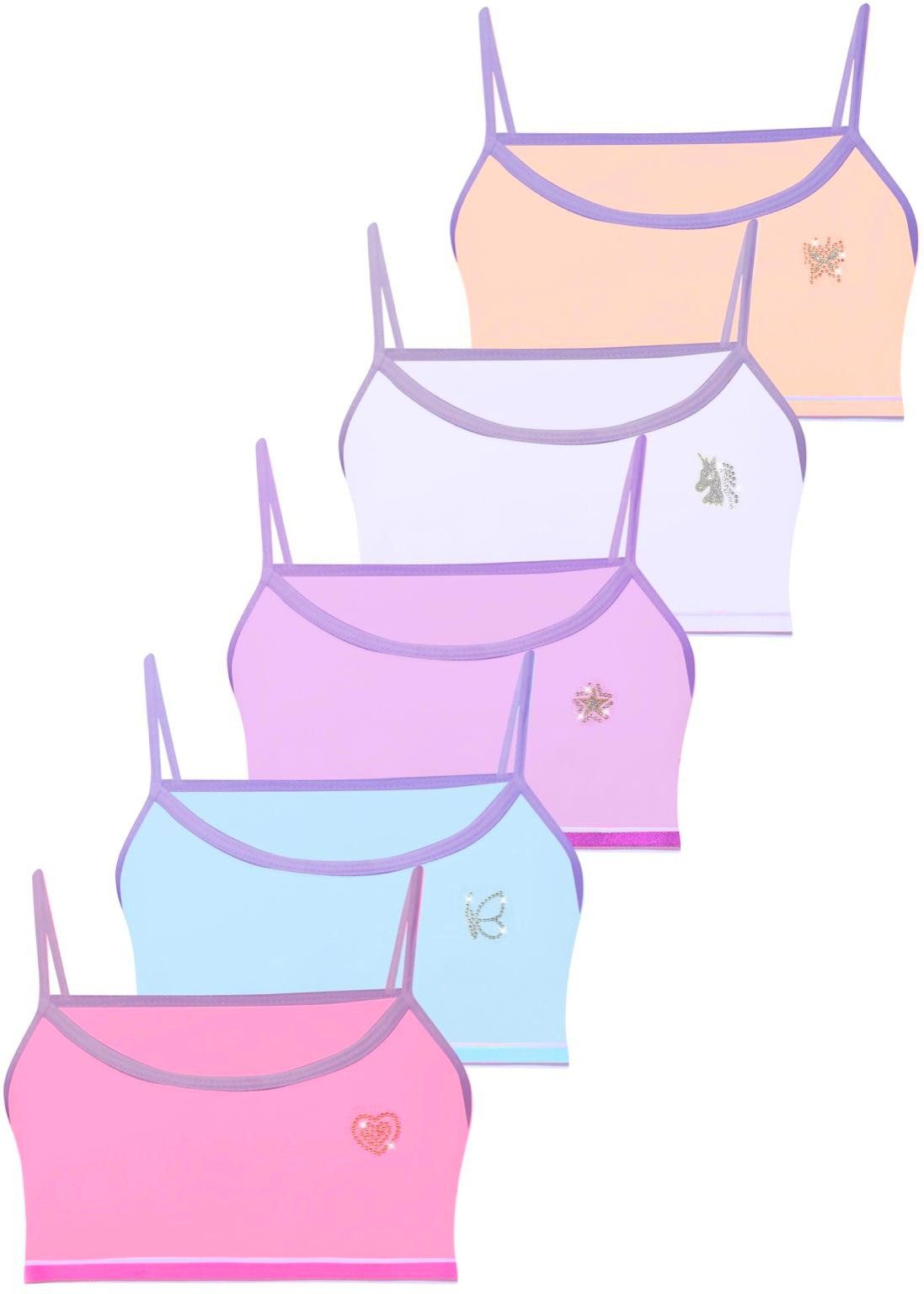 5er SET Mädchen Bustiers aus hochwertiger Baumwolle mit verschiedenen Strasssteinen