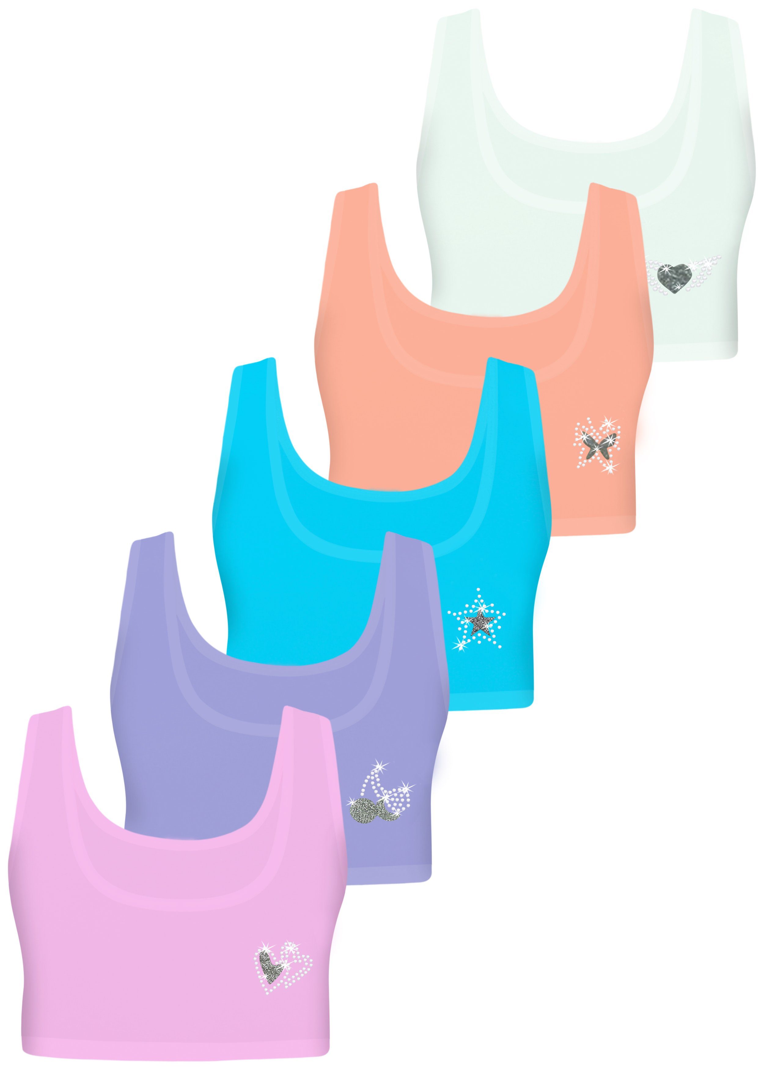 5er SET Mädchen Bustiers aus hochwertiger Baumwolle mit verschiedenen Strasssteinen