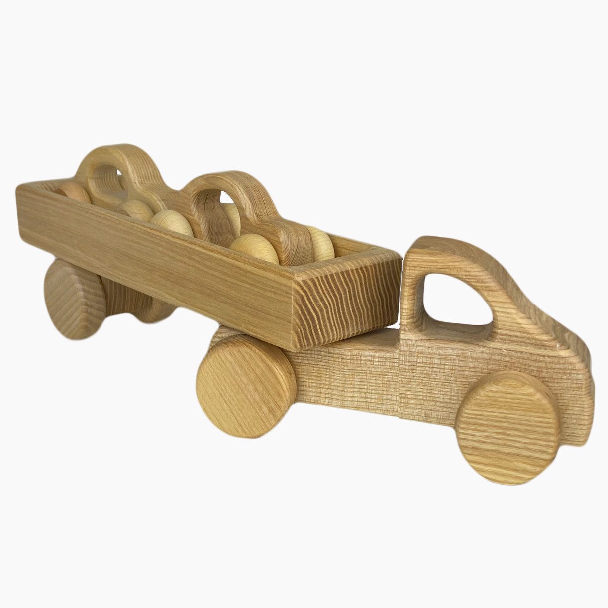 Das hochwertige Holz verleiht jedem Fahrzeug seinen ganz eigenen Charakter. Jedes Stück entsteht in sorgfältiger Handarbeit und trägt zur Förderung des haptischen Empfindens bei. Die matte Oberfläche und die klaren Konturen regen dazu an, das Set mit anderen Holzspielzeugen zu kombinieren.