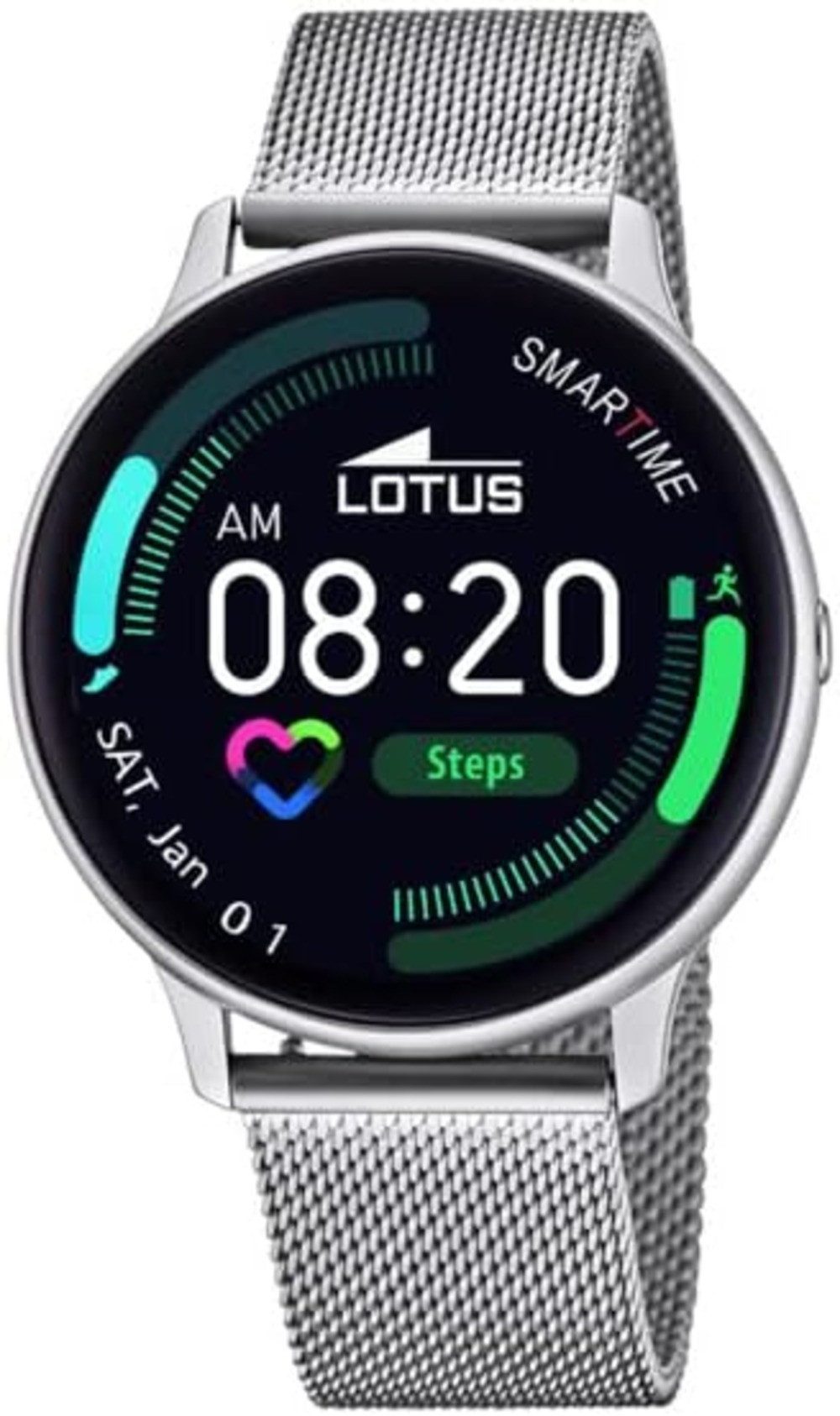 Diese moderne Smartwatch im Unisex-Design überzeugt durch ein silberfarbenes Edelstahlgehäuse mit einem Durchmesser von 42,6 mm. Das robuste Material kombiniert mit einem klaren, digitalen Interface macht die Uhr zum zuverlässigen Begleiter im Alltag.