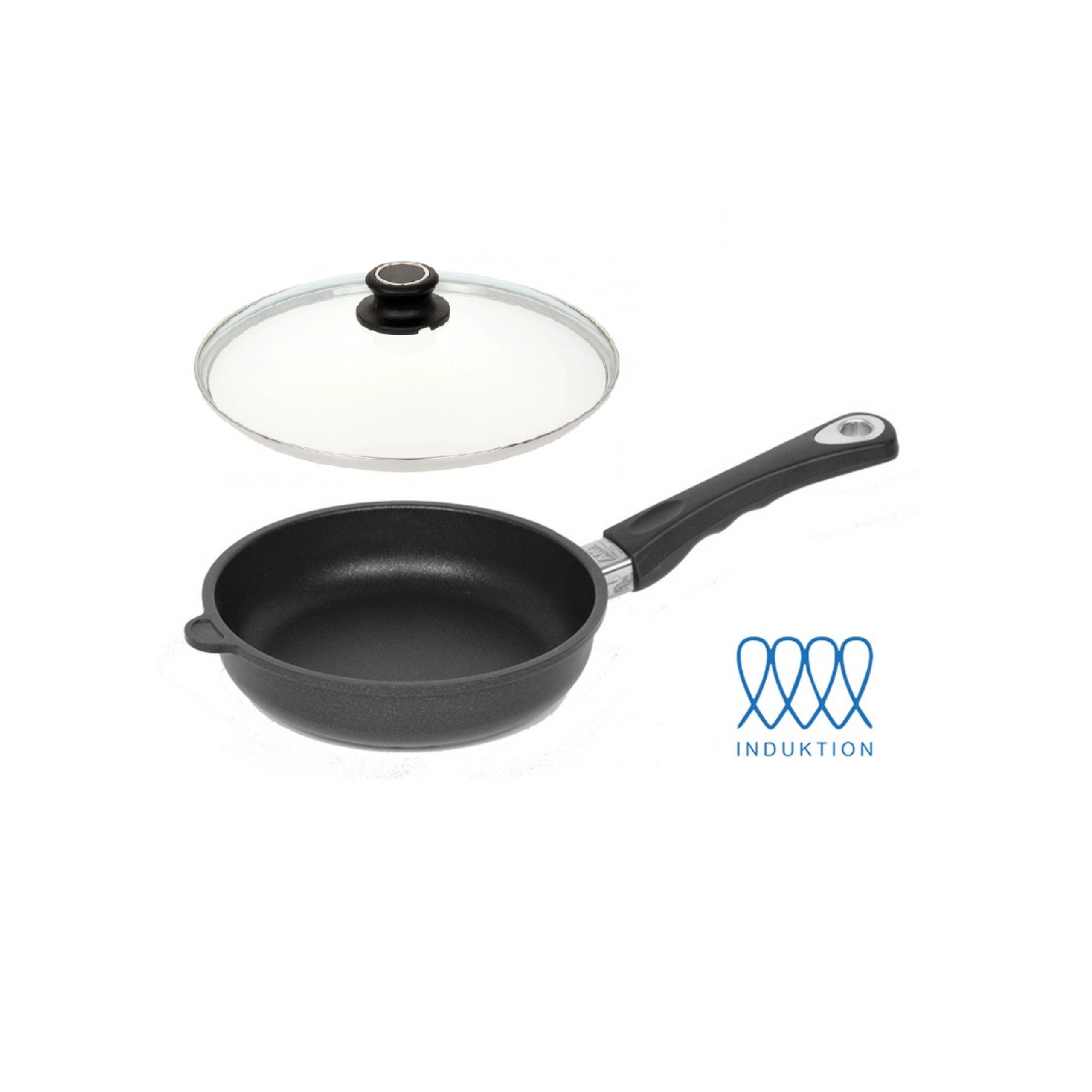 Lieferumfang: 1x Flachpfanne 20cm, 1x Glasdeckel 20cm, 1x abnehmbarer Griff