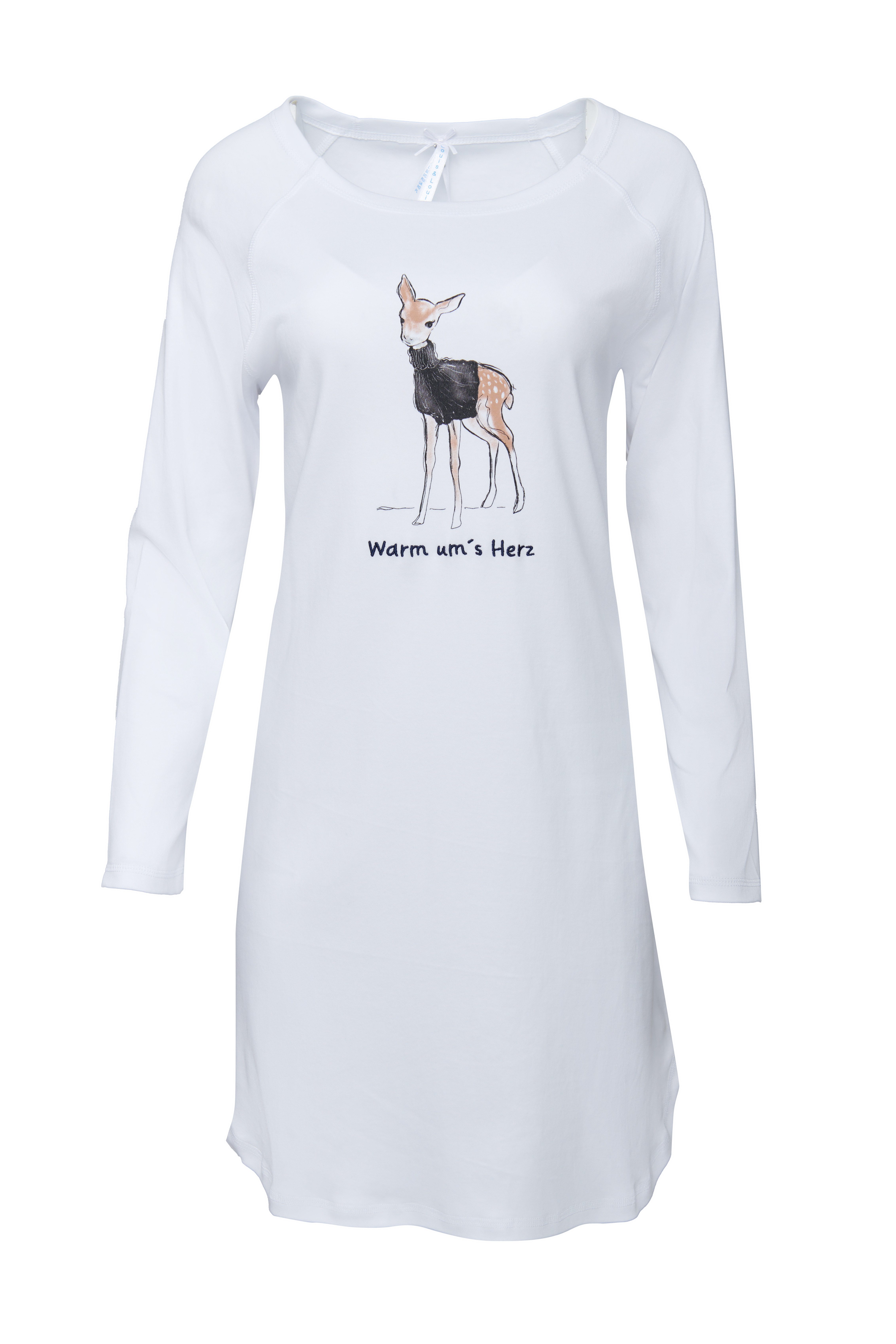 DESIGN: Das schlichte weiße Design kombiniert mit dem süßen "Bambi"-Motiv verleiht dem Nachthemd eine bezaubernde Optik.