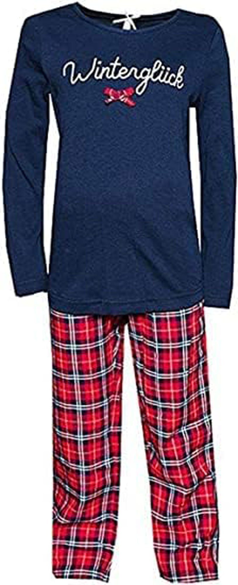 Louis & Louisa Pyjama Winterglück blau mit rot karierter Hose.